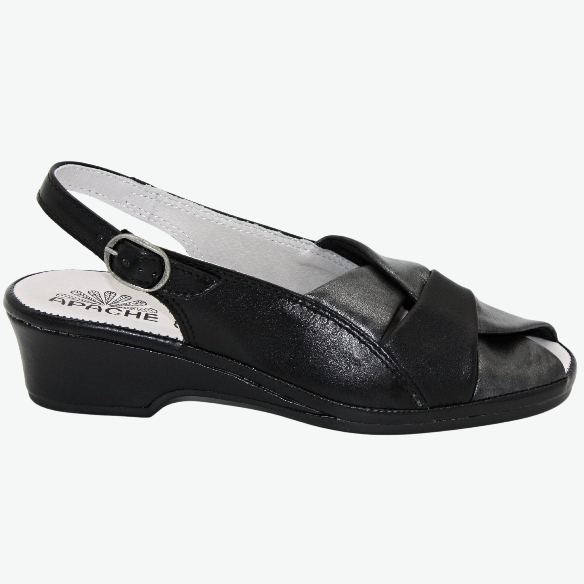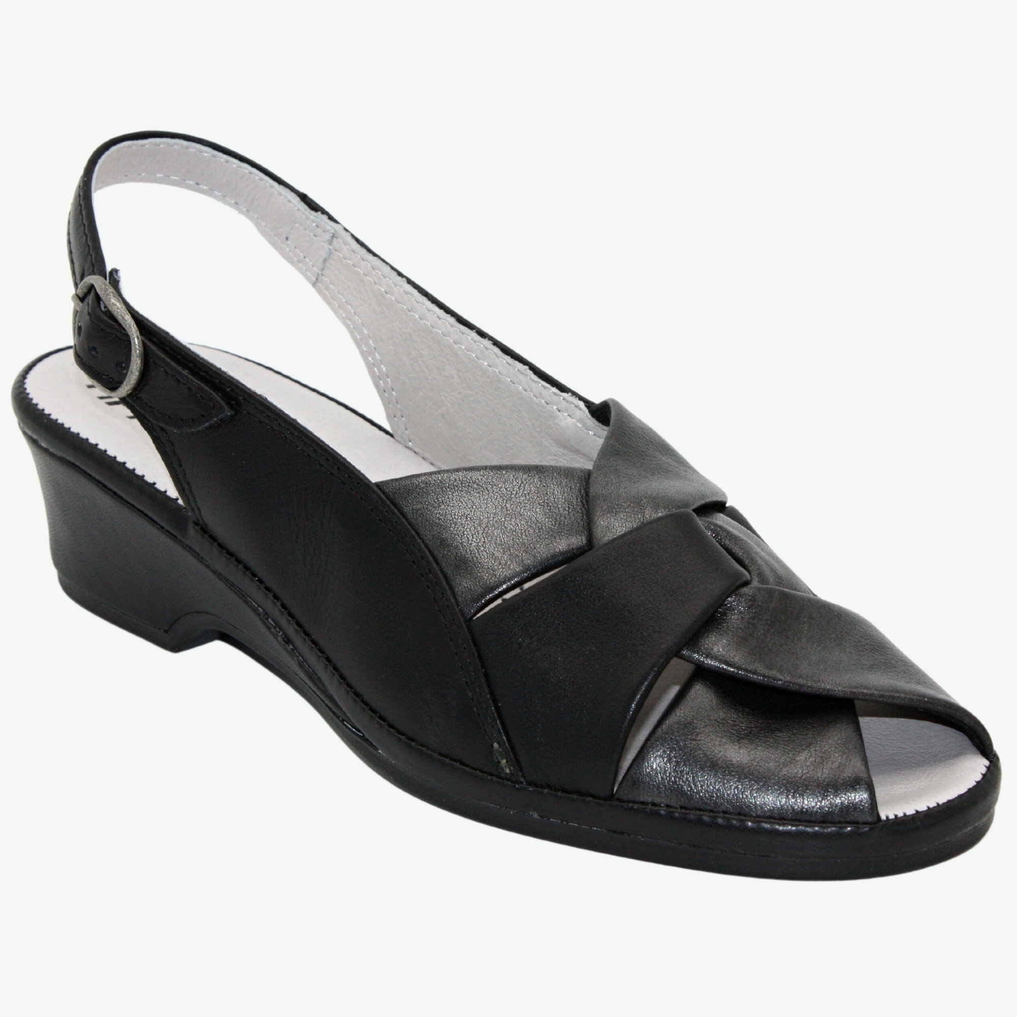 Dámské městské elegantní sandále se zvyšenou patou. Měkká a poddajná kůže.