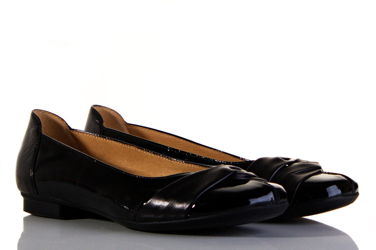 Elegantní, pohodlné baleríny vhodné ke kalhotám, sukni i šatům na nízkém podpatku. Výška podpatku je cca 1,5 cm. Povrchový materiál, podšívku a stélku bot tvoří kůže. Podešev je syntetická. Tato obuv je kompromisem mezi elegantní a pohodlnou botou.