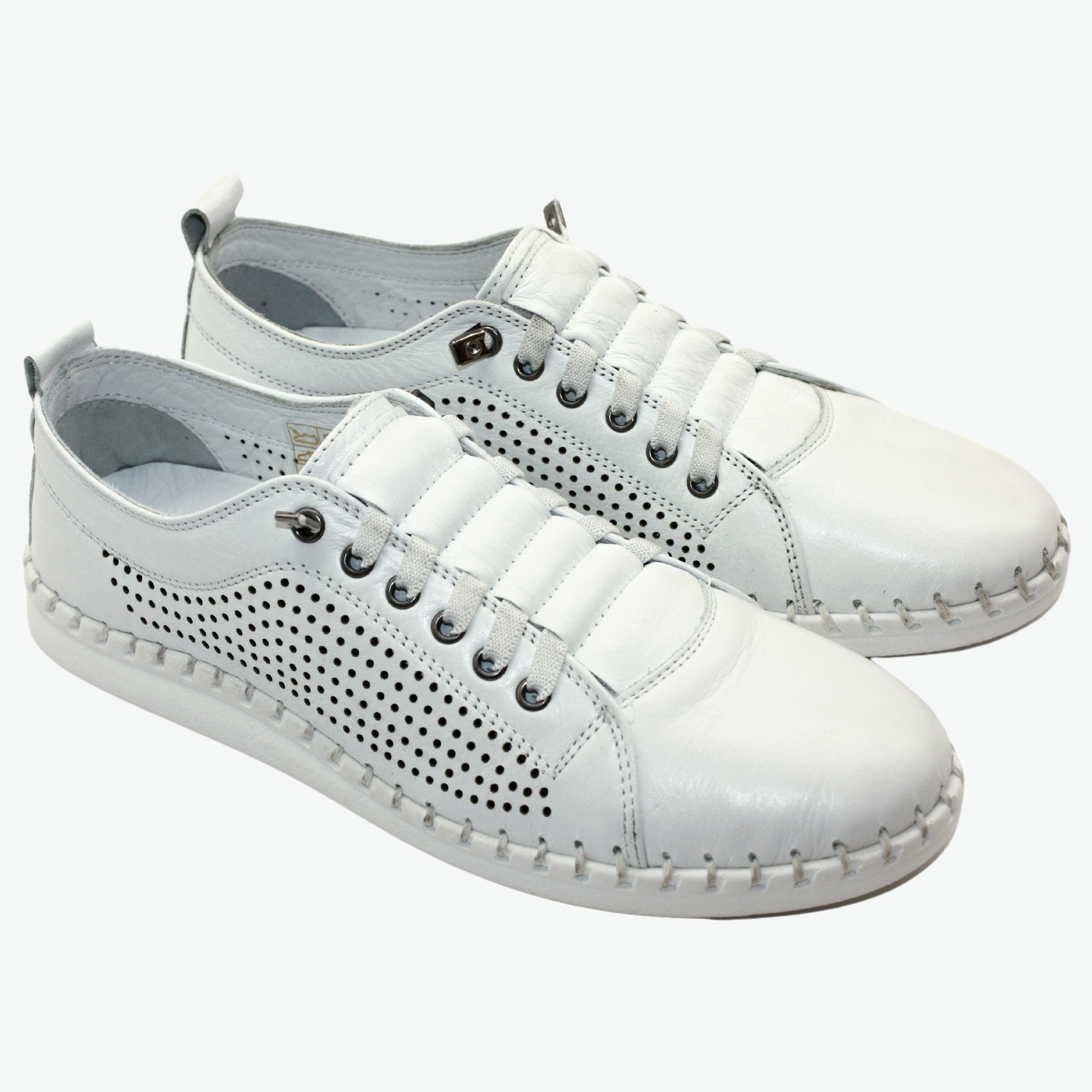 Tyto celokožené bílé tenisky jsou ideální volbou pro každého, kdo hledá styl a pohodlí v jednom. S flexibilní podrážkou nabízejí pohodlí a komfort. kMísto tradičních tkaniček jsou praktickými gumičkami, které usnadňují obouvání a dodávají botám moderní vzhled. Jejich minimalistický design se snadno smísí s různými styly. Přidejte si trendy tenisky do svého komfortu šatníku a využijte tyto styly s každým krokem!