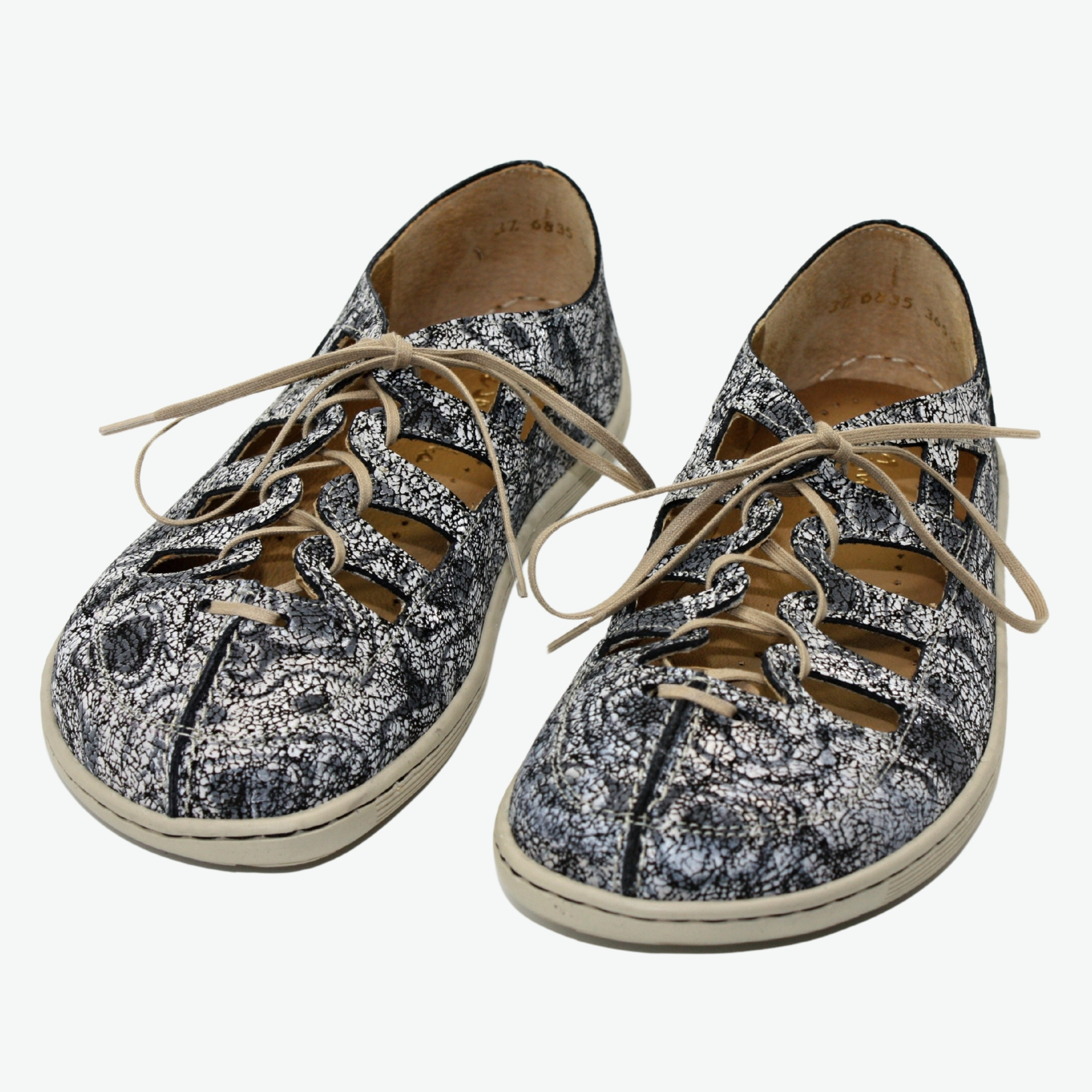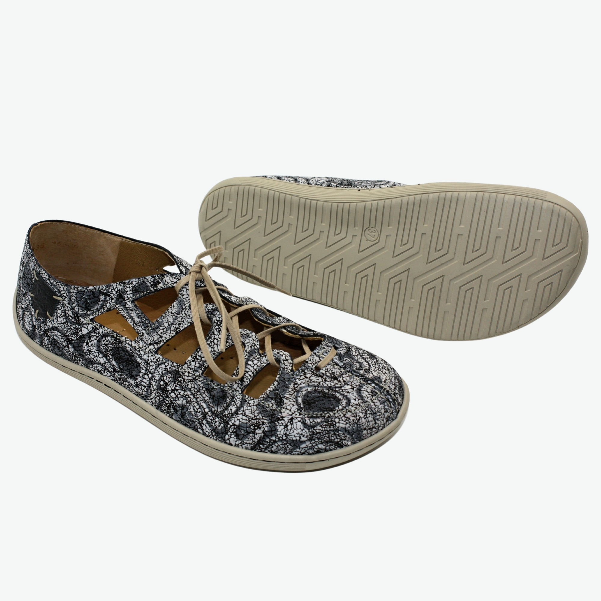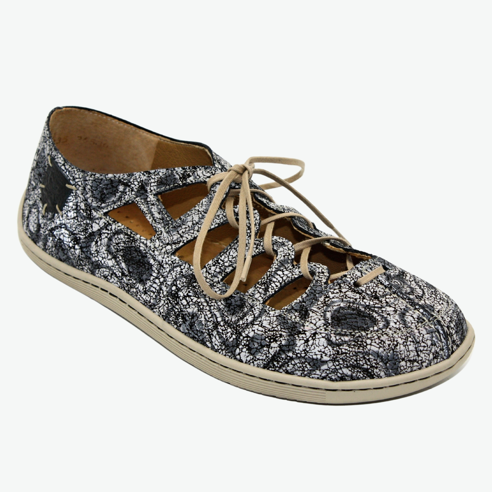 Dámské celokožené polobotky širšího střihu s tenkou a flexibilníé podešví. Díky šněrování si můžete přizpůsobit obuv chodidlům.
