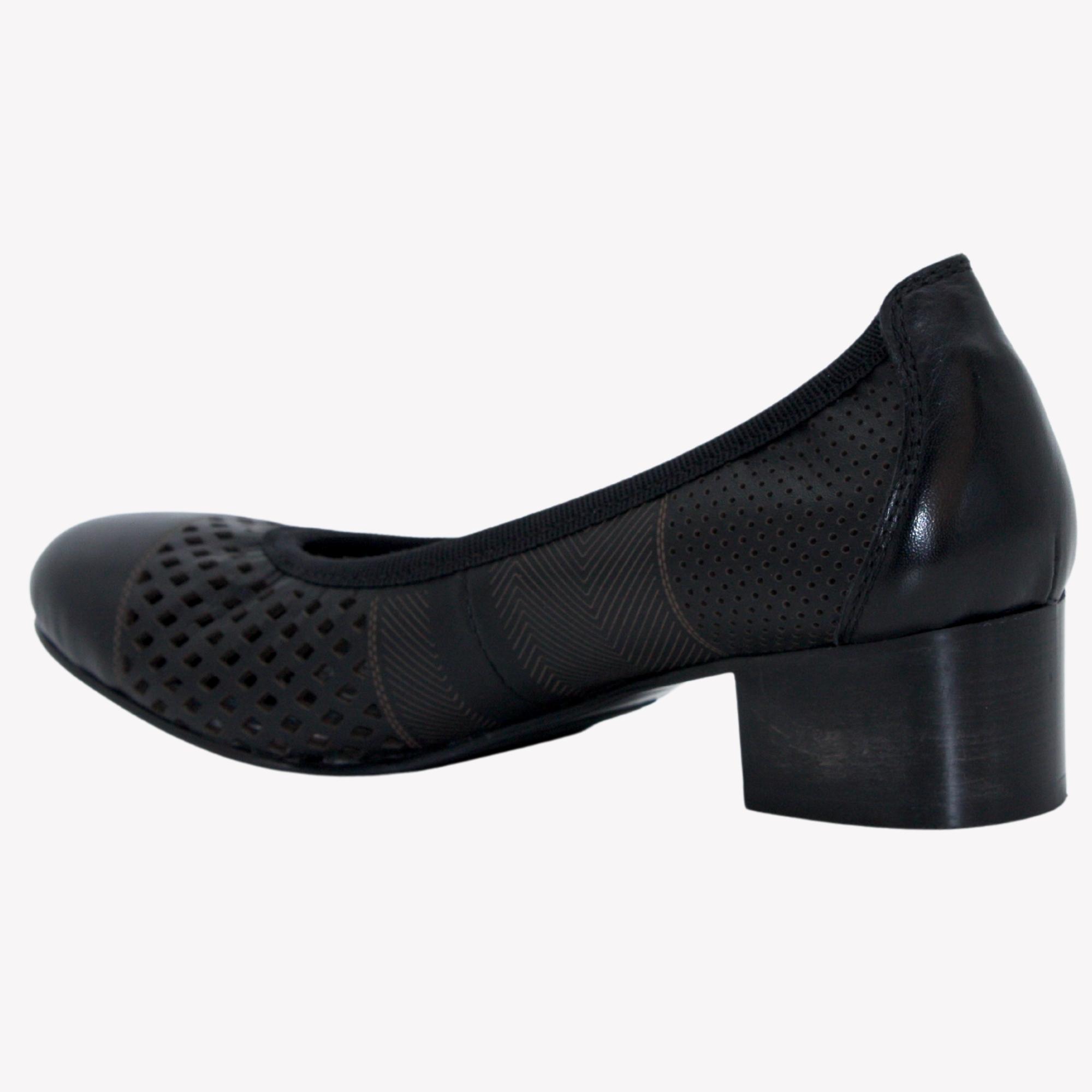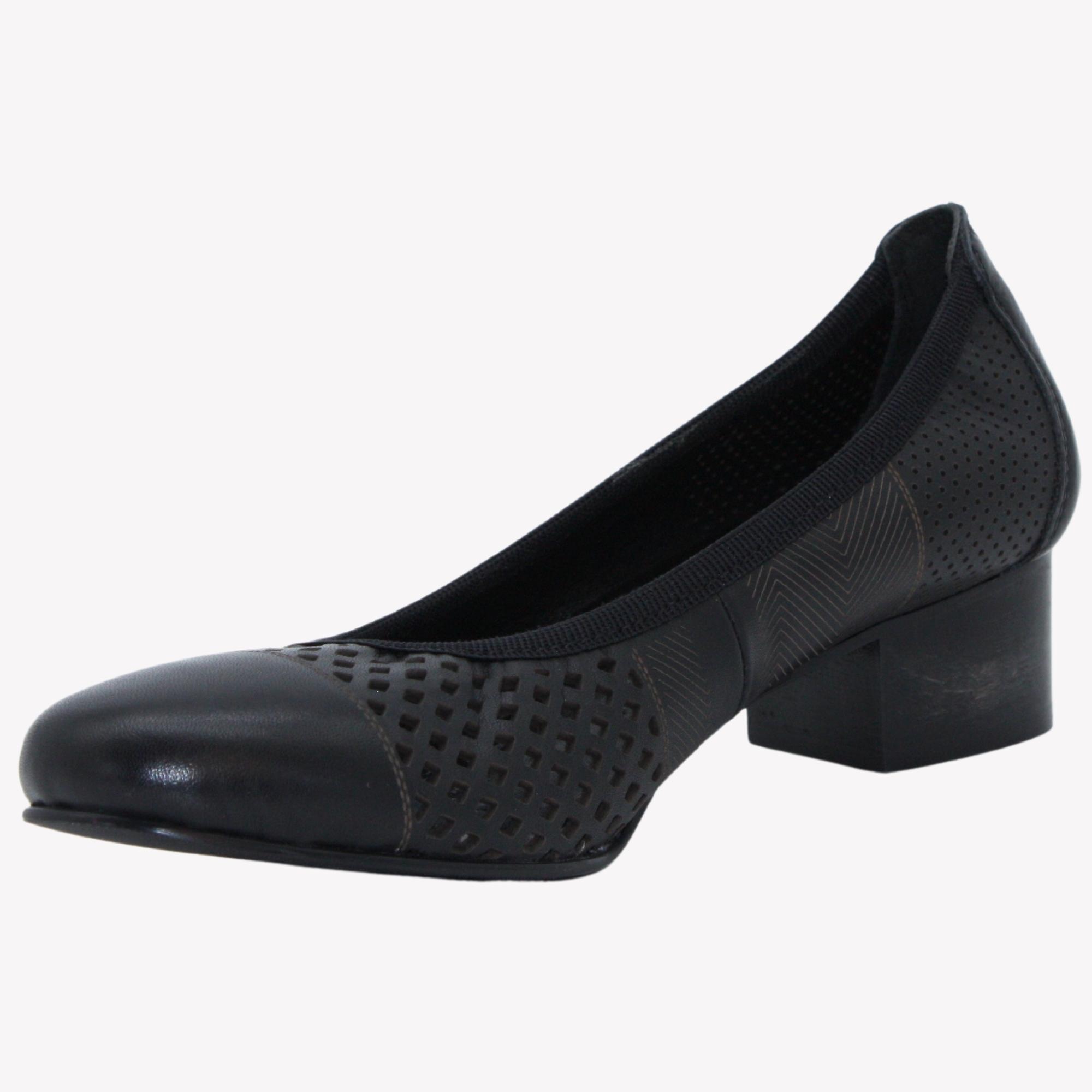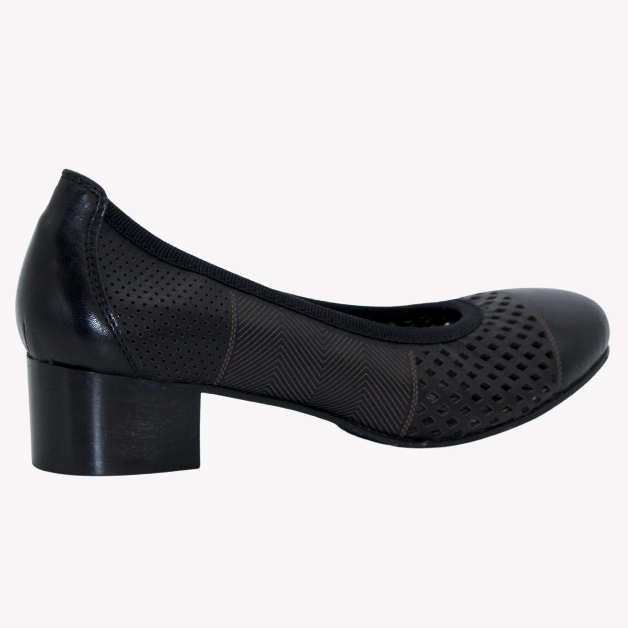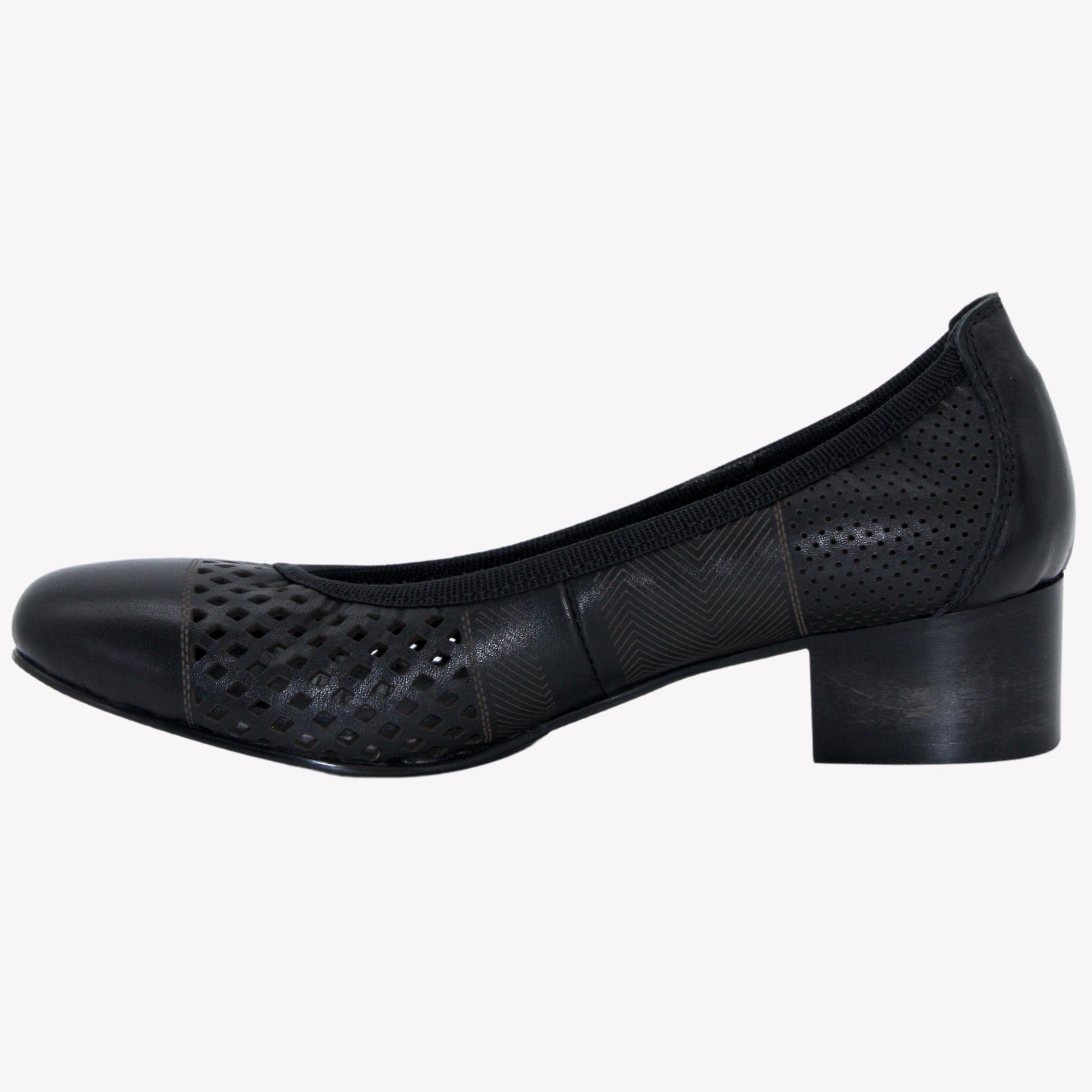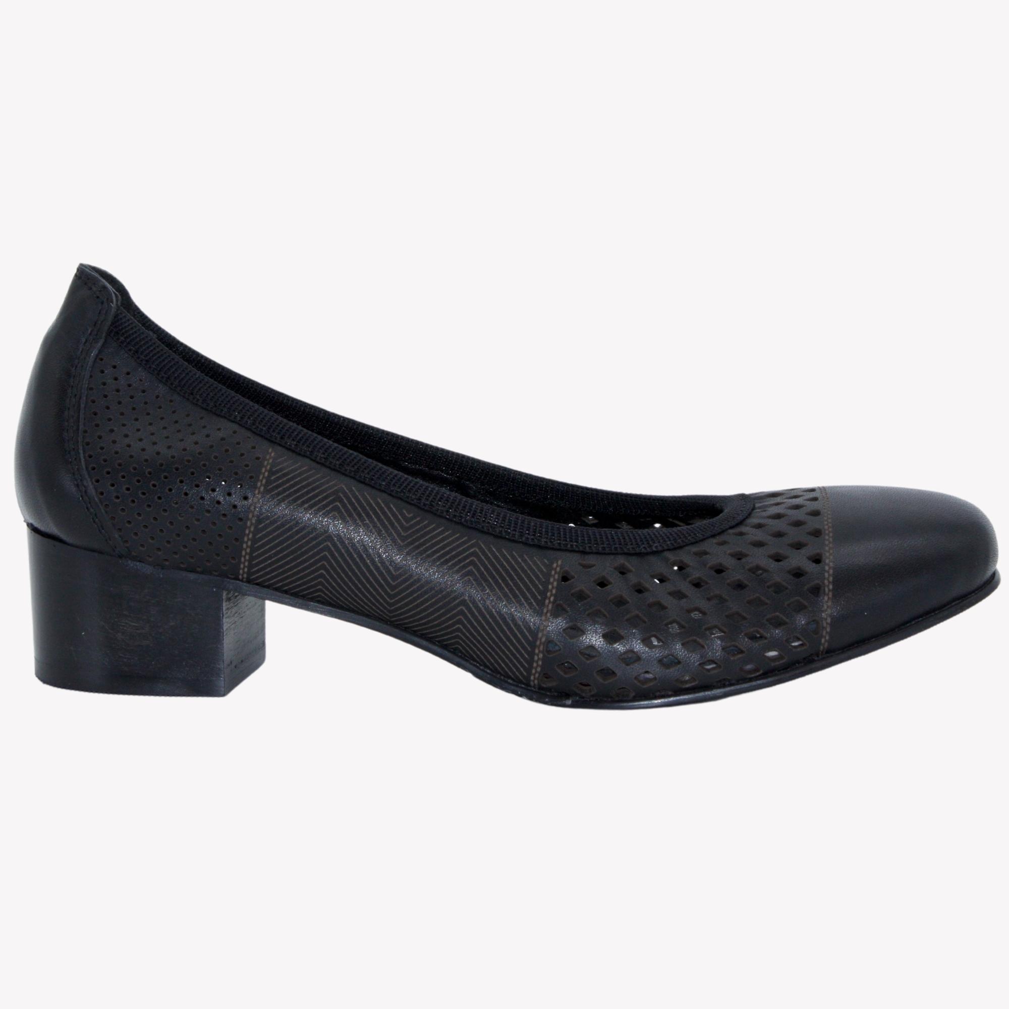 Dámské celokožené lodičky s perforací a nižším podpatkem.