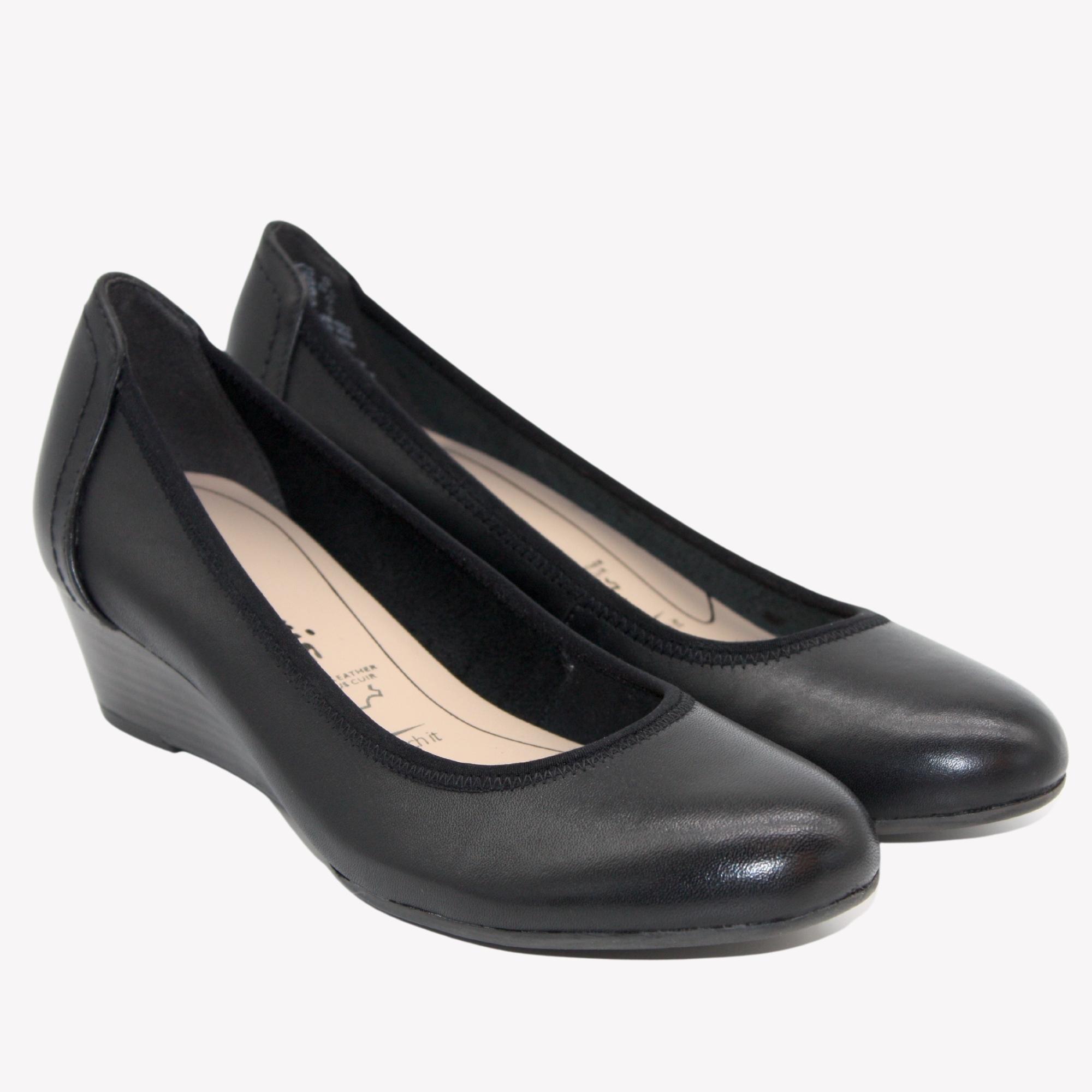 Tradiční balerínky na klínku již patří k matadorům. Každý rok jsou mezi první desítkou nejoblibenějších bot. Vyměkčená stélka a stabilní klín. Sedí skvěle k sukním ale vypadají dobře i ke kalhotům.Značka Tamaris je na našem trhu velmi populární nejen pro vždy trendový design obuvi, ale také pro pohodlí, které přináší. Tuto značku tvoří logo "