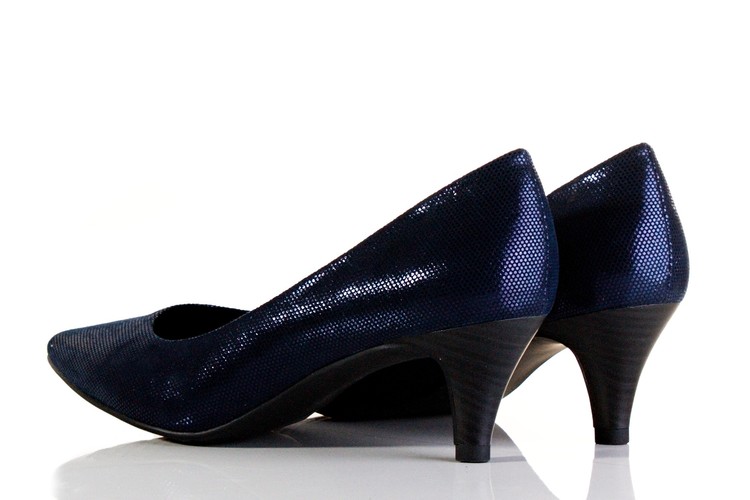 Klasické, společenské lodičky s jemným třpytem vhodné ke každé příležitosti na středním podpatku. Výška podpatku je cca 6 cm. Povrchový materiál bot tvoří textil, podšívku pak kombinace textilu a syntetiky a stélka je syntetická, vyměkčená a vyplněná paměťovou pěnou se systémem TOUCH IT, tudíž se naprosto přizbůsobí chodidlu zákazníka a tím působí kladně na funkci svalu chodidla. Podešev je syntetická. Ozdobte se těmito botami.