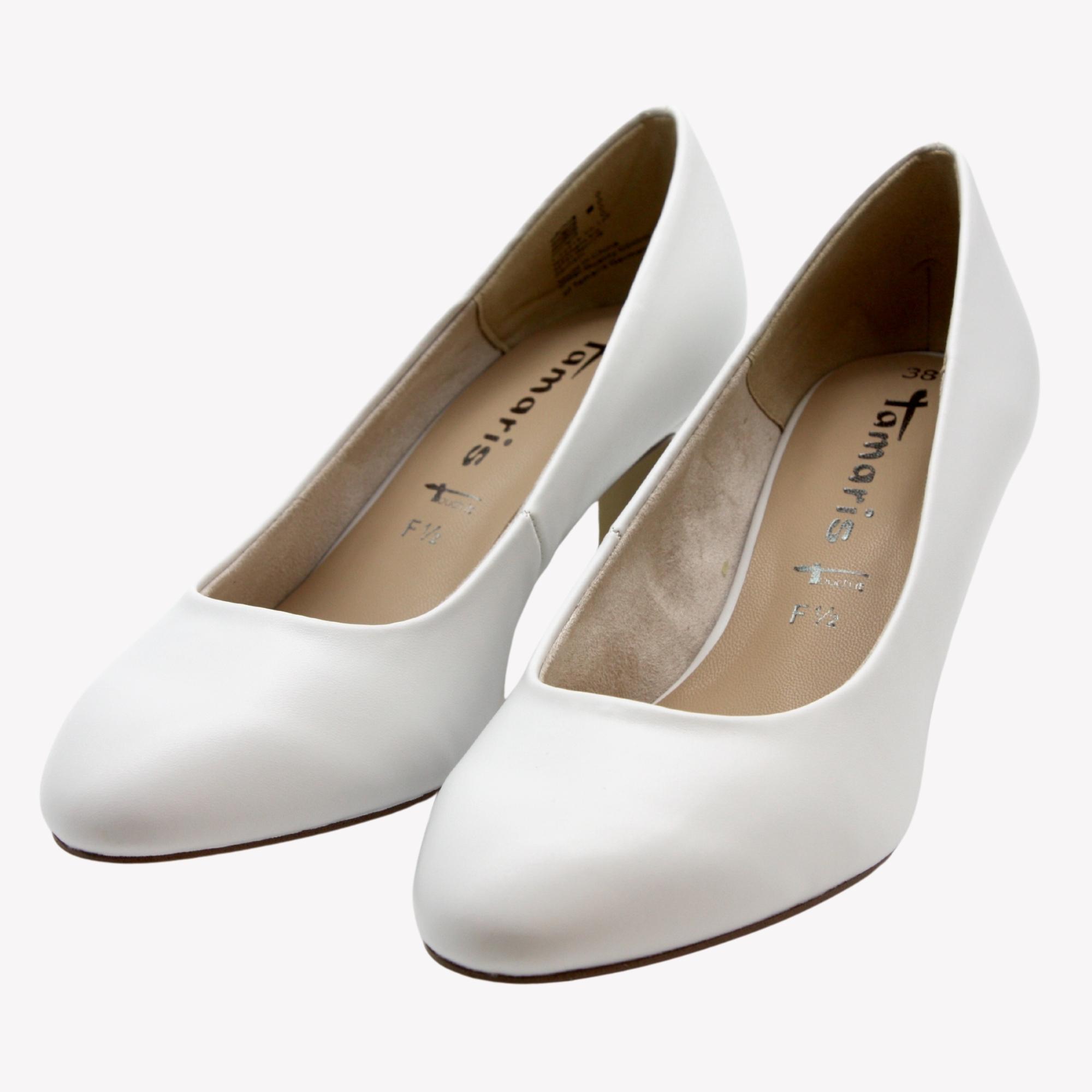 Dámské svatební lodičky na středním podpatku. Stélka je vyměkčená a určitě v nich prožijete nádherný den.Značka Tamaris je na našem trhu velmi populární nejen pro vždy trendový design obuvi, ale také pro pohodlí, které přináší. Tuto značku tvoří logo "