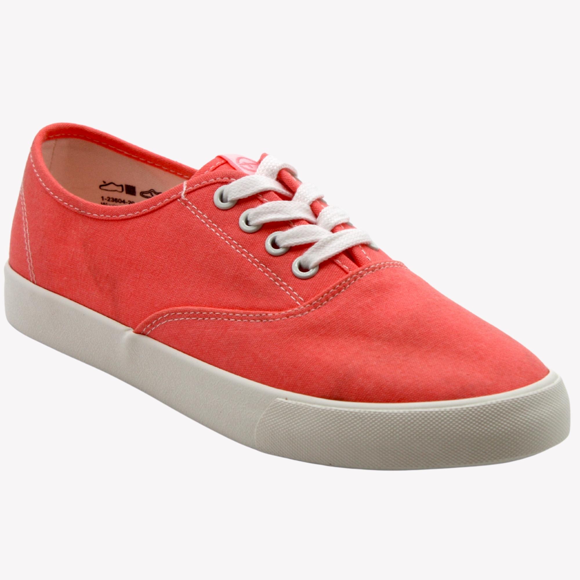 Dámské městské platěné tenisky na šněrování a díky vyměkčené stélce a flexibilní podešvi se budete cítit celý den jako na obláčku.