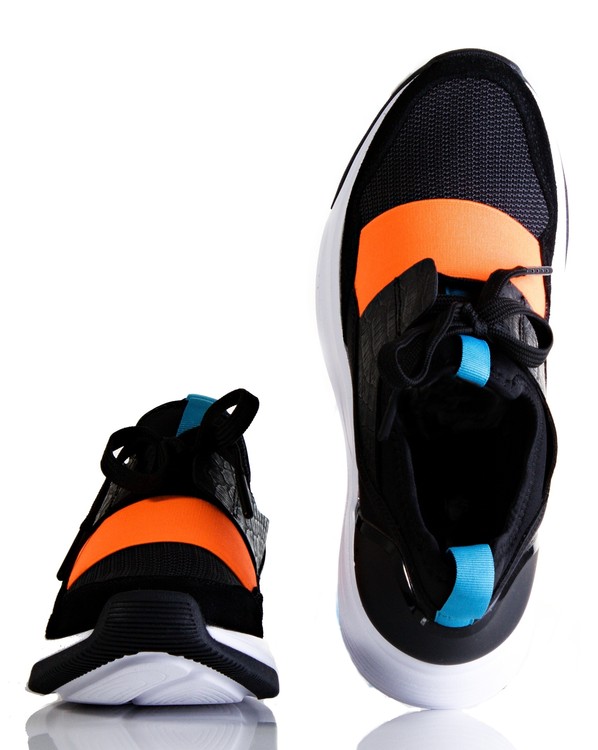 Originální, pestrobarevné tenisky se širokým, gumovým páskem v místě nártu pro komfortnější obutí, vhodné k velkému spektru barevného oblečení na mírně zvýšené podešvi. Povrchový materiál bot tvoří kombinace kůže a textilu, podšívku pak kombinace textilu a syntetiky a stélka je textilní, vyjímatelná a vyplněná paměťovou pěnou se systémem TOUCH IT, tudíž se naprosto přizbůsobí chodidlu zákazníka a tím působí kladně na funkci svalu chodidla. Podešev je syntetická a v místě paty měří cca 3,5 cm. Tyto boty Vás překvapí svou lehkostí.