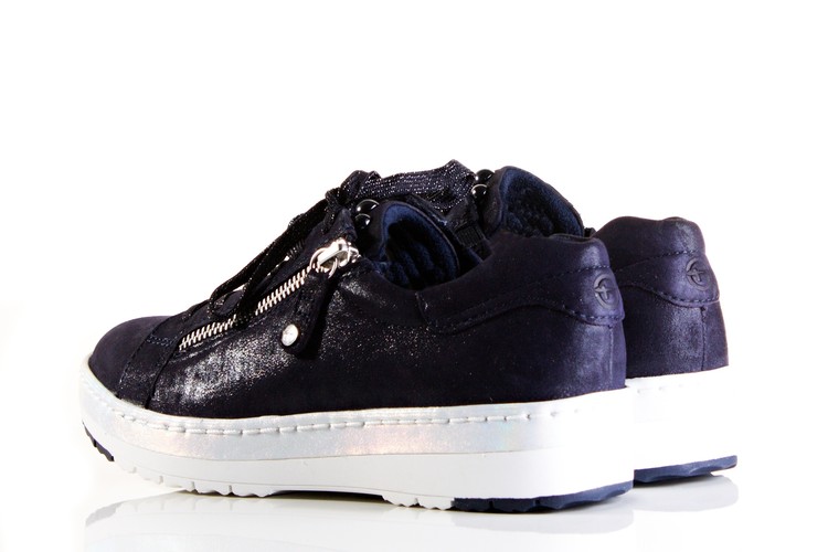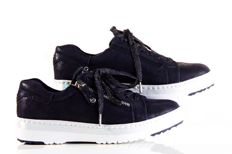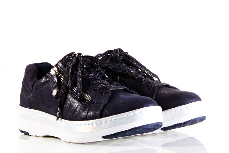 Luxusní tenisky z nové komfortní řady, zaměrěné na vaše pohodlí. Povrchový materiál tvoří kombinace kůže a syntetiky, podšívku tvoří kombinace kůže a textilu . Stélka je kožená, vyměkčená a tvořena komfortním systémem ,,PURERELAX "". Jeho výhodou je přizpůsobivost stélky po krátké době nošení individuálním požadavkům Vaší nohy. Stélka je navíc vyjímatelná, aby jí bylo možno vyměnit za zákaznikovu ortopedickou. Podešev je syntetická. Vrchní část nad šněrováním je zdobená kamínky. Tato obuv by neměla chybět ve Vaší kolekci bot.
