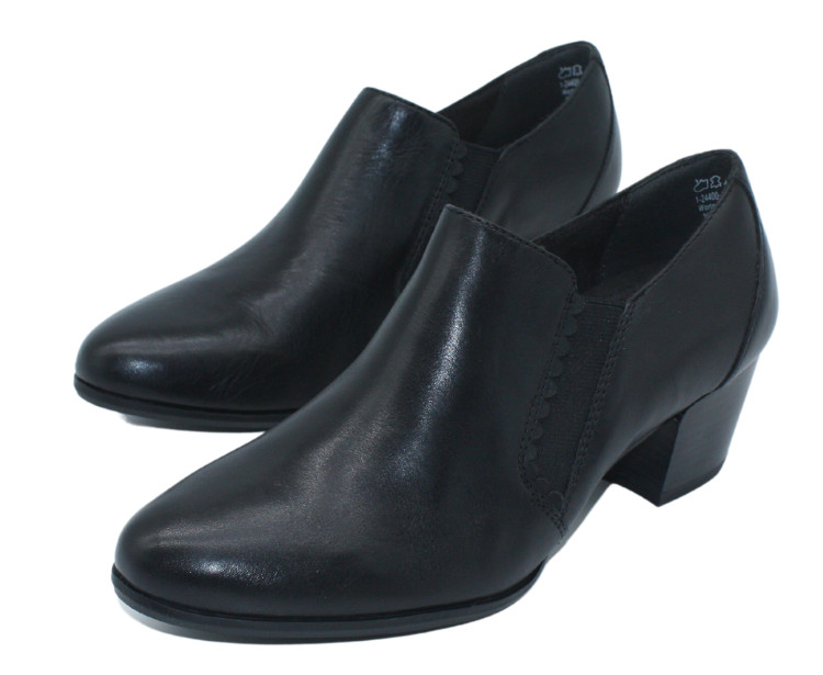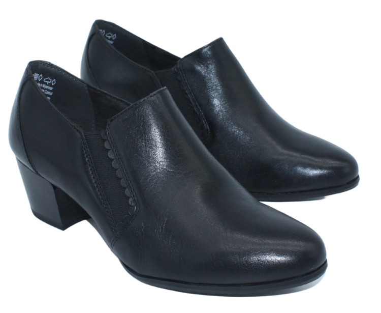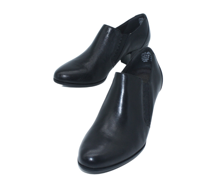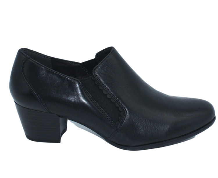 Stylové polobotky s gumovými vsadkami, vhodné ke kalhotám i sukni na středním podpatku. Výška podpatku je cca 4,5 cm. Povrchový materiál bot tvoří kůže, podšívku pak kombinace textilu a syntetiky. Stélka je kožená, vyměkčená a vyplněná paměťovou pěnou se systémem TOUCH IT, tudíž se naprosto přizbůsobí chodidlu zákazníka a tím působí kladně na funkci svalu chodidla. Pokud zákaznice potřebuje ortopedickou vložku, tak tato obuv je naprosto vhodná, protože má vyjímatelnou stélku. Podešev je syntetická.