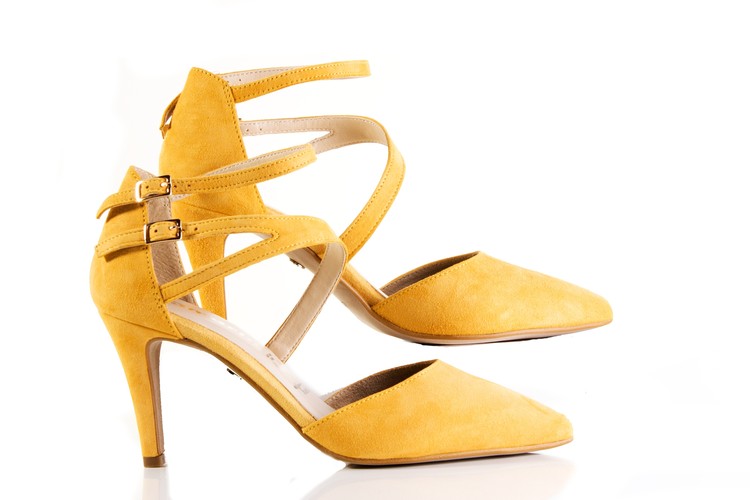 Elegantní lodičky, vhodné ke každé příležitosti na vysokém podpatku, v krásně žluté barvě. Výška podpatku je cca 7,5 cm. Povrchový materiál bot tvoří broušená kůže, podšívku kombinace textilu a syntetiky a stélka je kožená. Stélka je navíc velmi příjemně vyměkčená a vyplněná paměťovou pěnou se systémem TOUCH IT, tudíž se naprosto přizbůsobí chodidlu zákazníka a tím působí kladně na funkci svalu chodidla. Podešev je syntetická. V těchto botách budete vypadat luxusně.