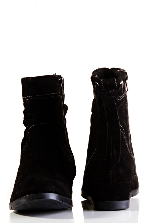 Krásná kotníčková obuv na klínku. Výška klínku cca 3,5 cm. Povrchový materiál bot tvoří broušené kůže, podšívku zateplený textil, a stélka je ze zatepleného textilu, příjemně vyměkčená a vyplněná paměťovou pěnou se systémem TOUCH IT, tudíž se naprosto přizbůsobí chodidlu zákazníka a tím působí kladně na funkci svalu chodidla. Výška klínku je cca 3 cm. V těchto botách budete vypadat luxusně.