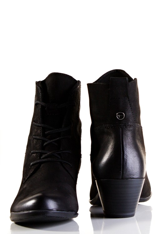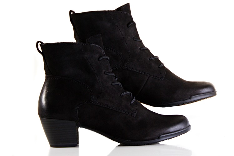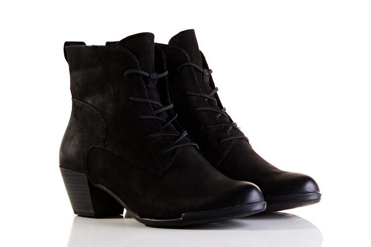 Elegantní, kotníčková obuv na gumičky v místě tkaniček, vhodná i ke společenským příležitostem na středním podpatku. Výška podpatku je cca 5 cm. Povrchový materiál bot tvoří kombinace kůže a textilu, podšívku pak kombinace textilu a syntetiky. Podešev je syntetická. Tato obuv je kompromisem mezi elegantní a pohodlnou botou.