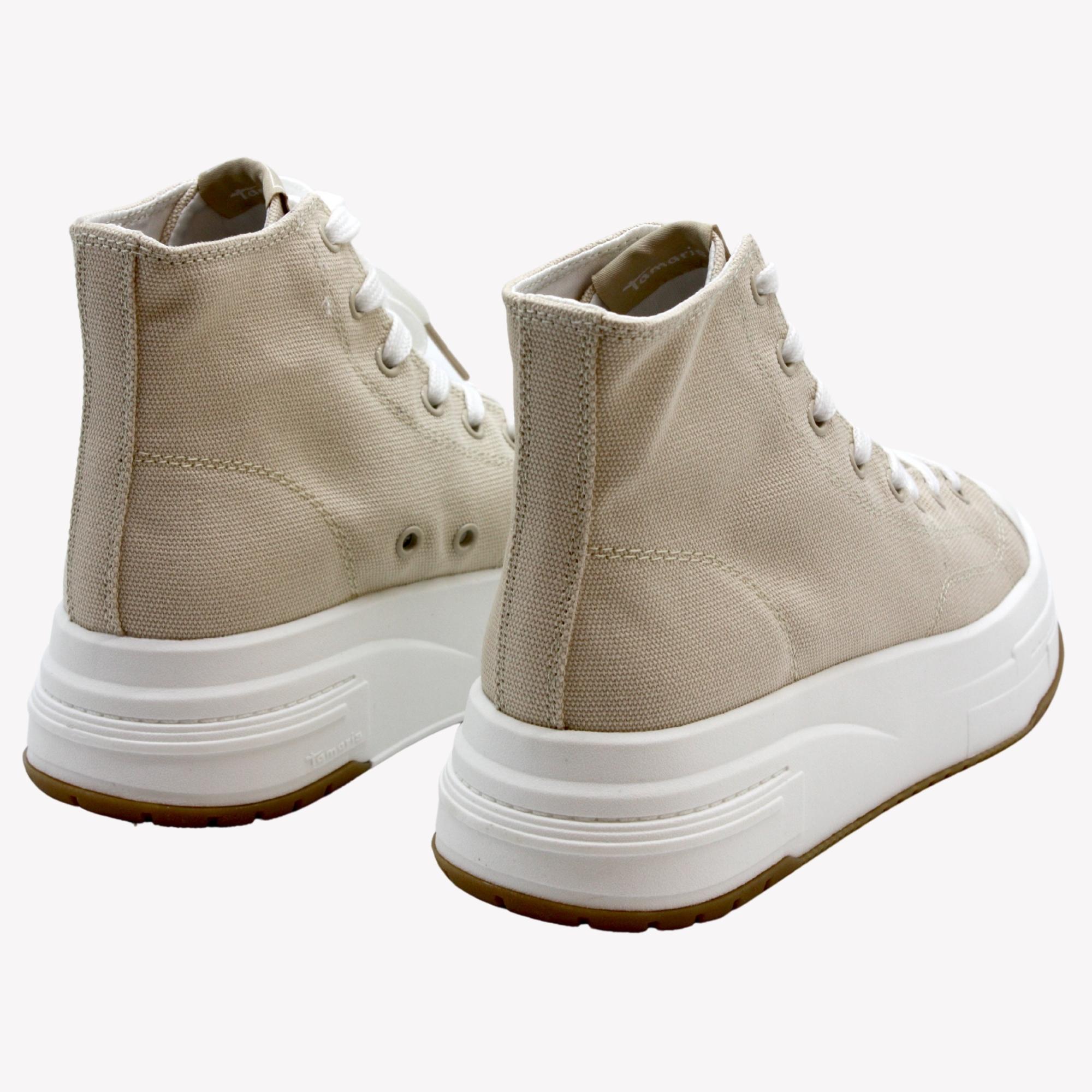 Dámské vyšší kotníkové tenisky na platformě na šněrování. Platforma je odhlečená. Stélka vyměkčená a pohodlná.Značka Tamaris je na našem trhu velmi populární nejen pro vždy trendový design obuvi, ale také pro pohodlí, které přináší. Tuto značku tvoří logo "