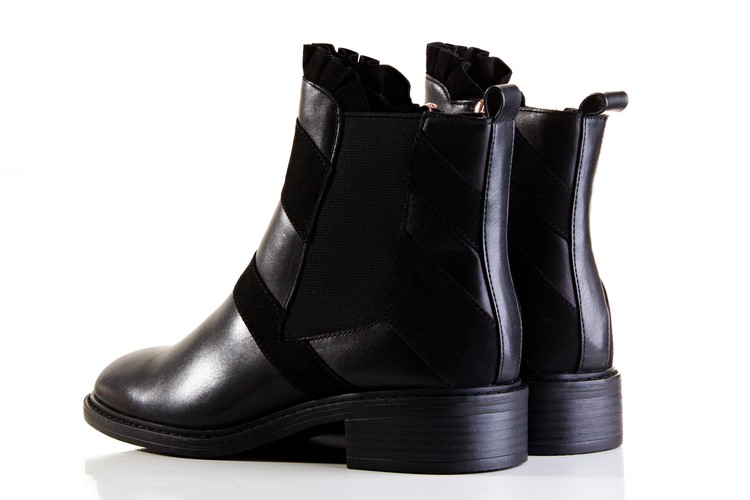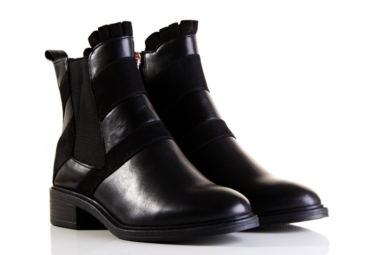 Krásná a elegantní, kotníčková obuv, se zapínáním na zip a gumovou vsadkou, pro lepší obouvání, na středním podpatku. Výška podpatku je cca 3,5 cm. Povrchový materiál bot tvoří kombinace hladká kůže a textilu, podšívku a stélku zateplený textil. Podešev je syntetická. V těchto botách budete vypadat luxusně.
