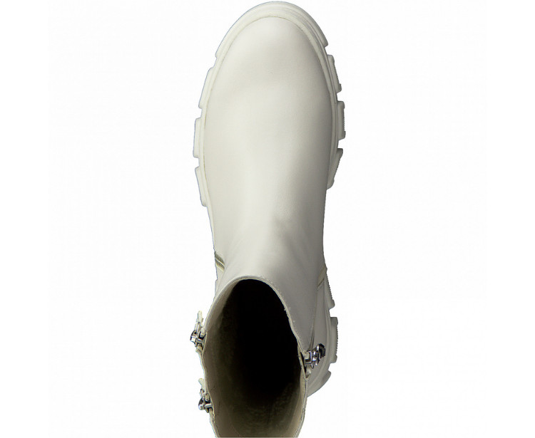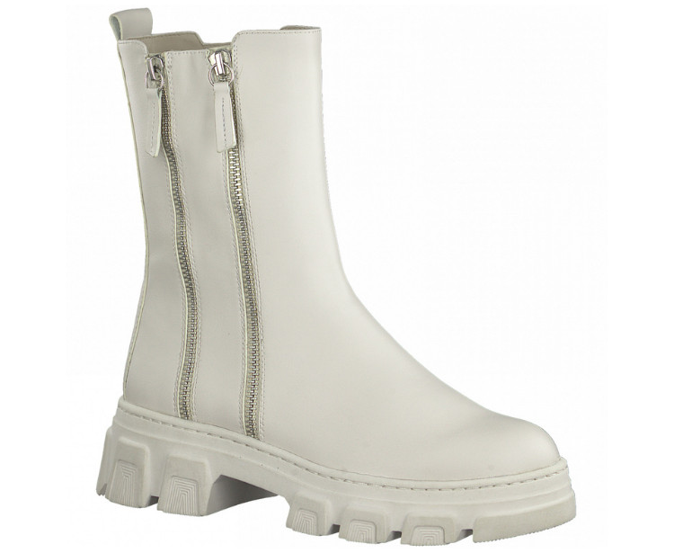 Dámské vyšší kotníkové boty s vyšší platformou a ozdobnými zipy po straně.