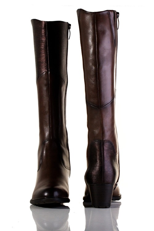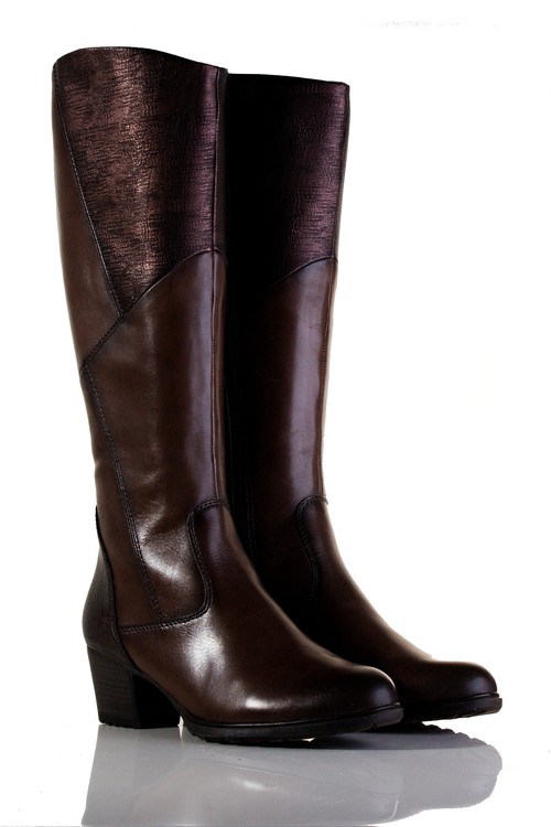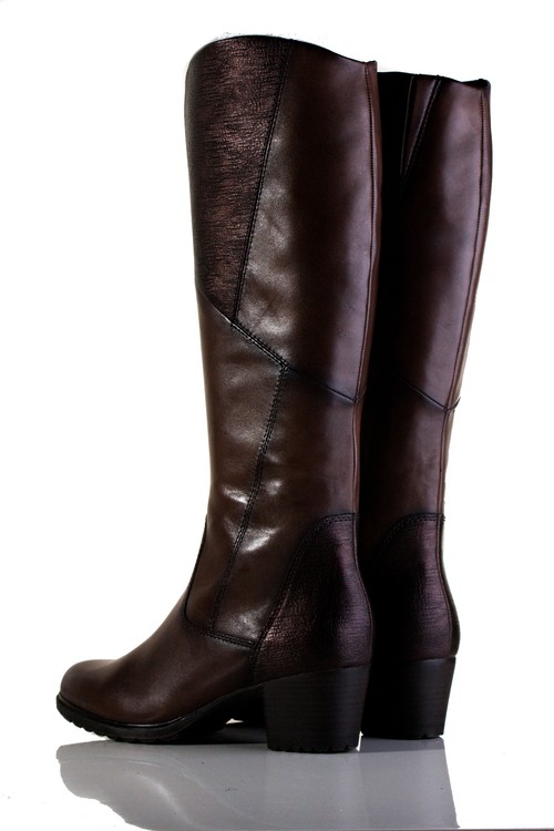 Překrásné, originální kozačky ve velikosti XS přes lýtko, se zapínáním na dlouhý zip a flexibilními, gumovými vsadkami, vhodné ke každé příležitosti na středním podpatku. Výška podpatku je cca 5 cm. Povrchový materiál bot tvoří kombinace hladké kůže a syntetiky, podšívku pak textil a stélka je také textilní, vyměkčená a vyplněná paměťovou pěnou se systémem TOUCH IT, tudíž se naprosto přizbůsobí chodidlu zákazníka a tím působí kladně na funkci svalu chodidla. Podešev je syntetická. V těchto botách budete vypadat luxusně.