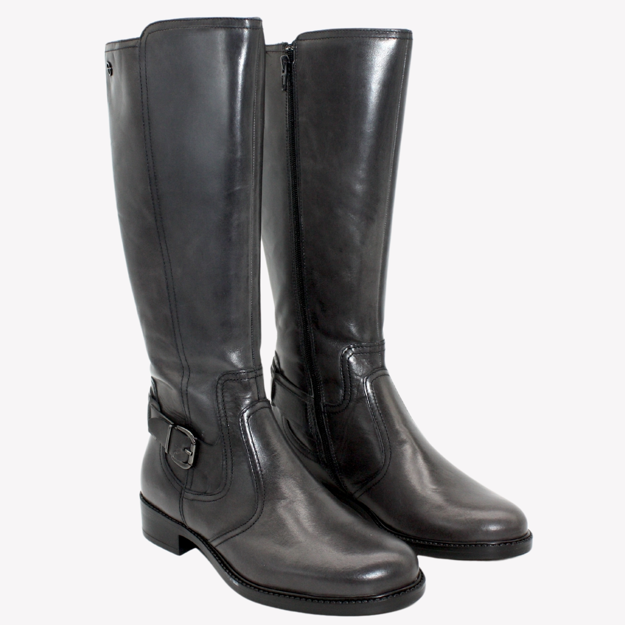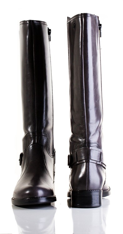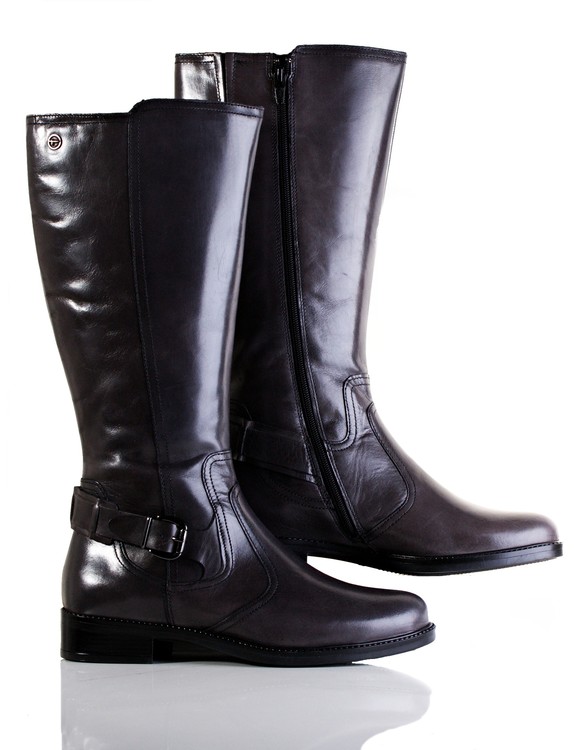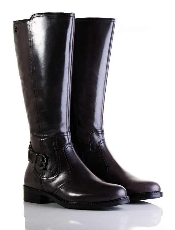 Dámské kožené kozačky na nižším podpatku. Vnitřní materiál je zateplený textil.