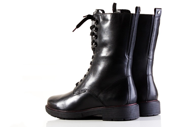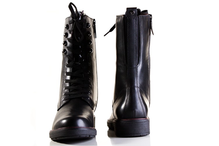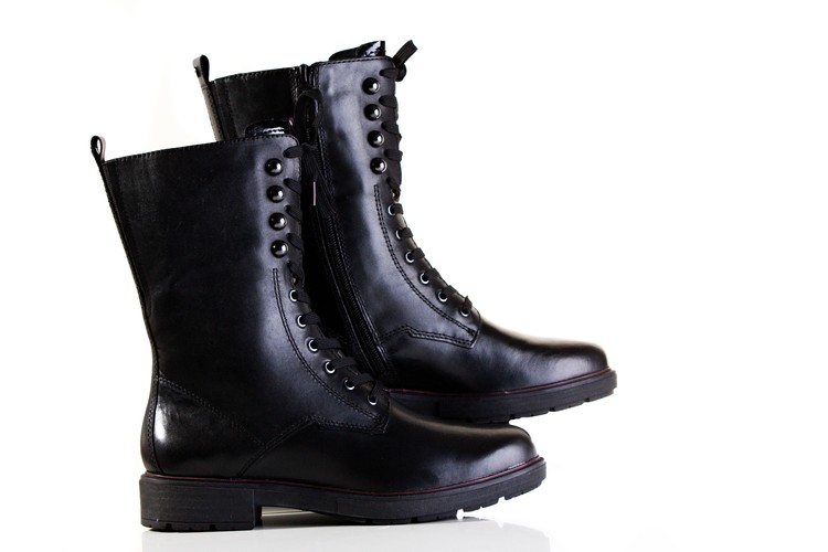 Vyšší, kotníčková obuv na šněrování a zip vhodná ke kalhotám na středním podpatku. Výška podpatku je cca 3 cm. Povrchový materiál bot tvoří kombinace hladké kůže a syntetiky, podšívku kombinace zatepleného textilu a kůže a stélku tvoří zateplený textil. Podešev je syntetická a v přední části měří cca 1 cm. Pro všechny, kteří se chtějí v botách cítit pohodlně a stylově.