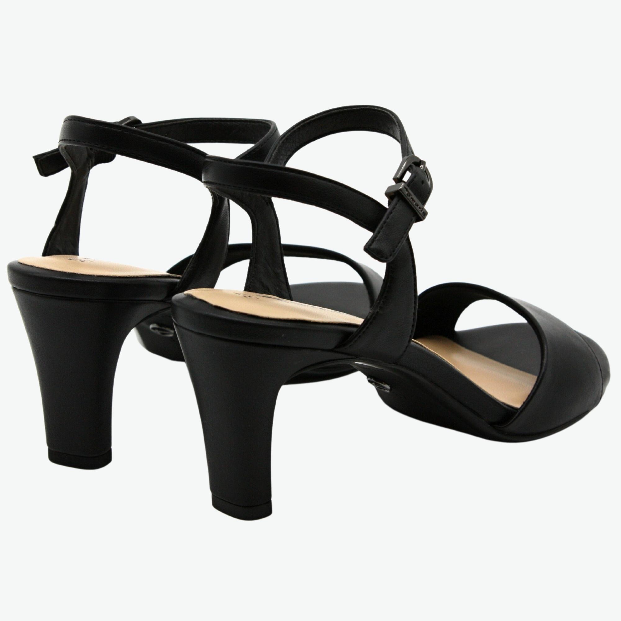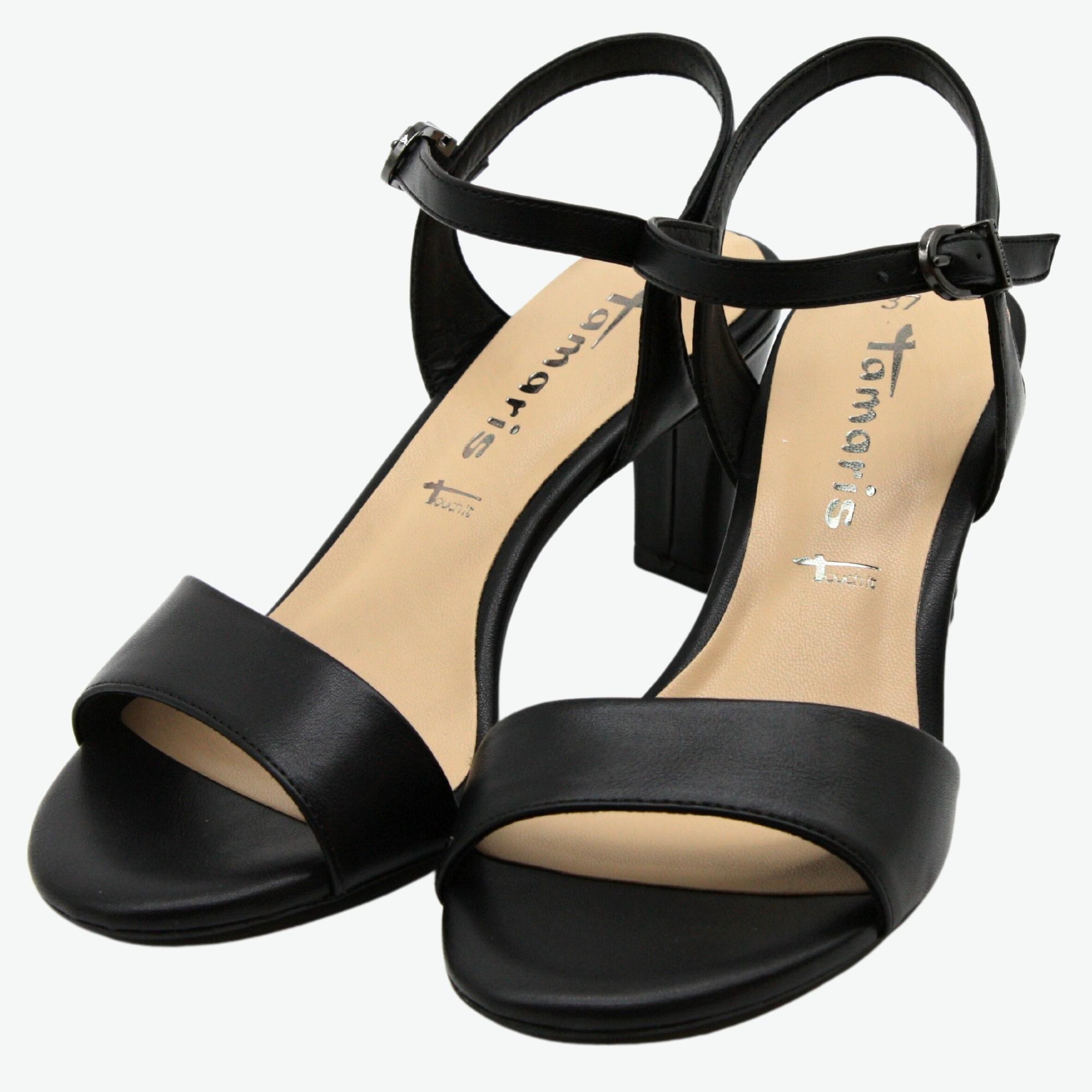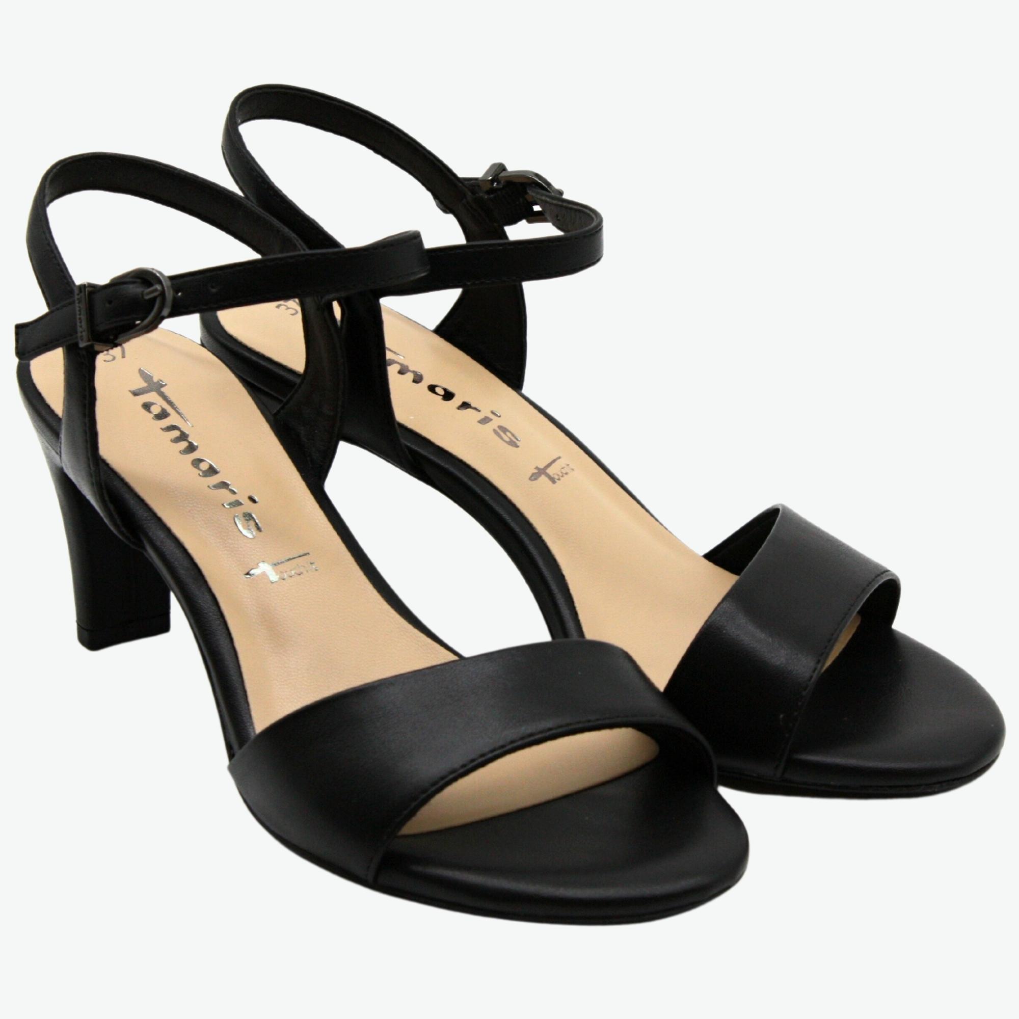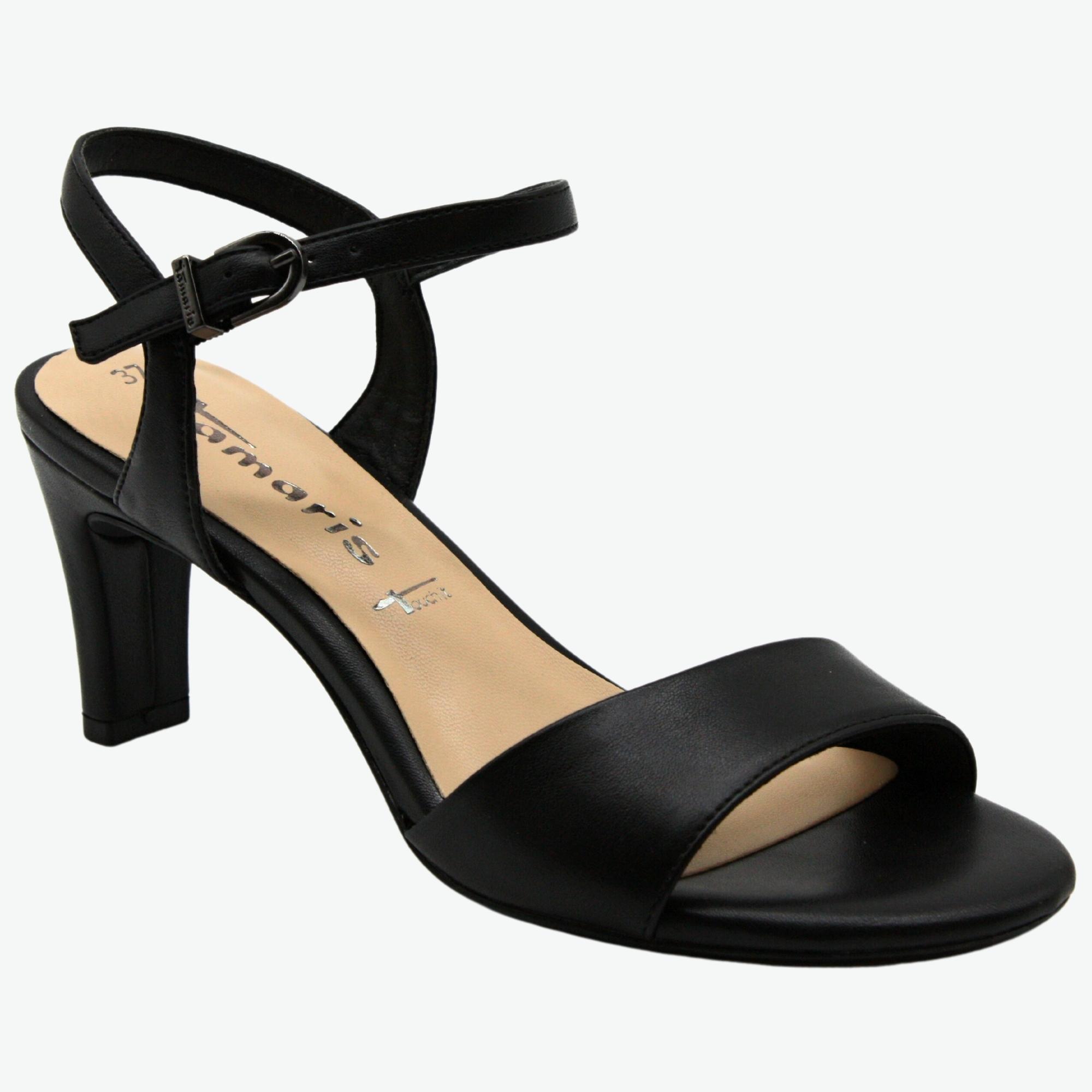 Dámské společenské elegantní sandále na podpatku, který má 7cm.Došlap je vyměkčený a pohodlný. ideální model k šatům.Značka Tamaris je na našem trhu velmi populární nejen pro vždy trendový design obuvi, ale také pro pohodlí, které přináší. Tuto značku tvoří logo "