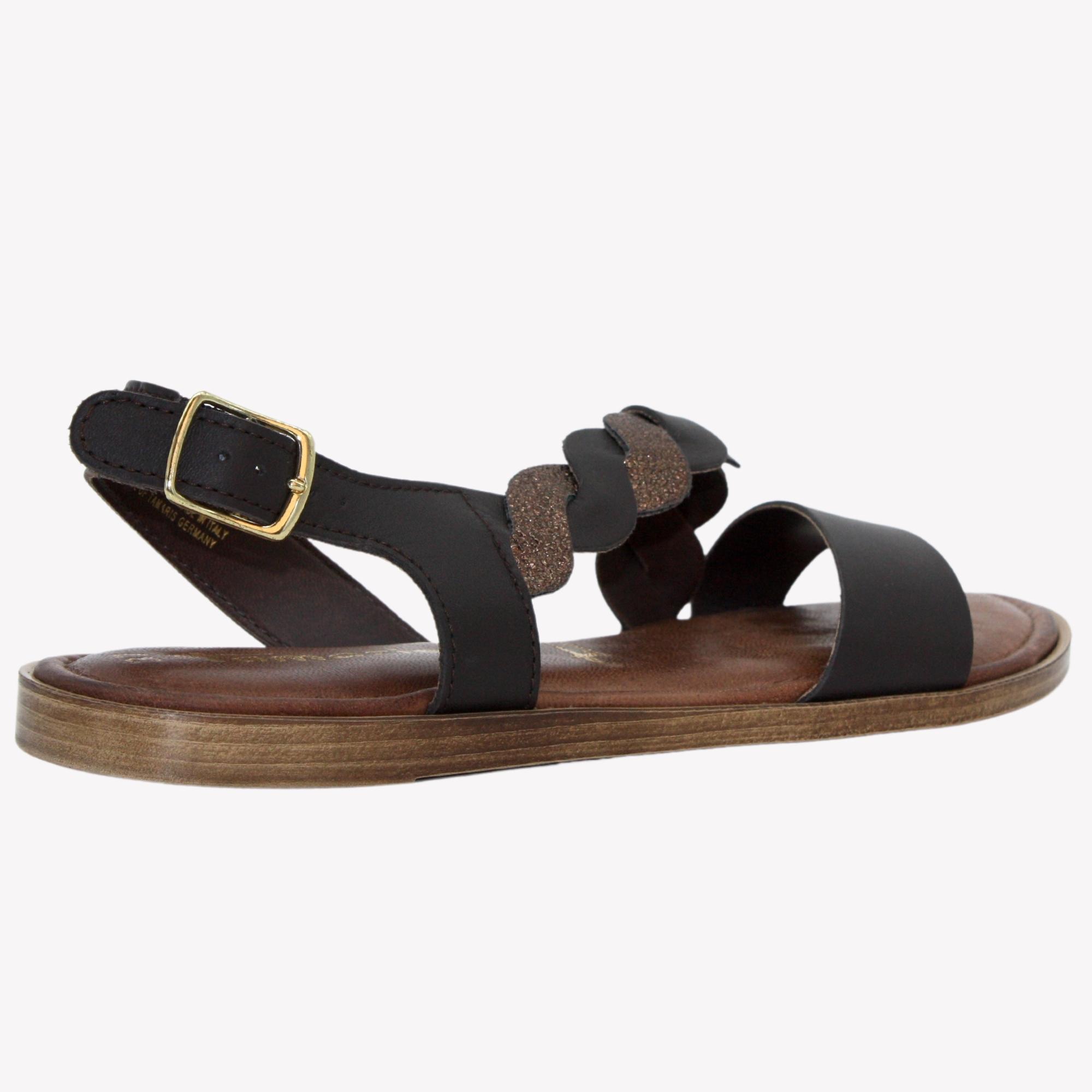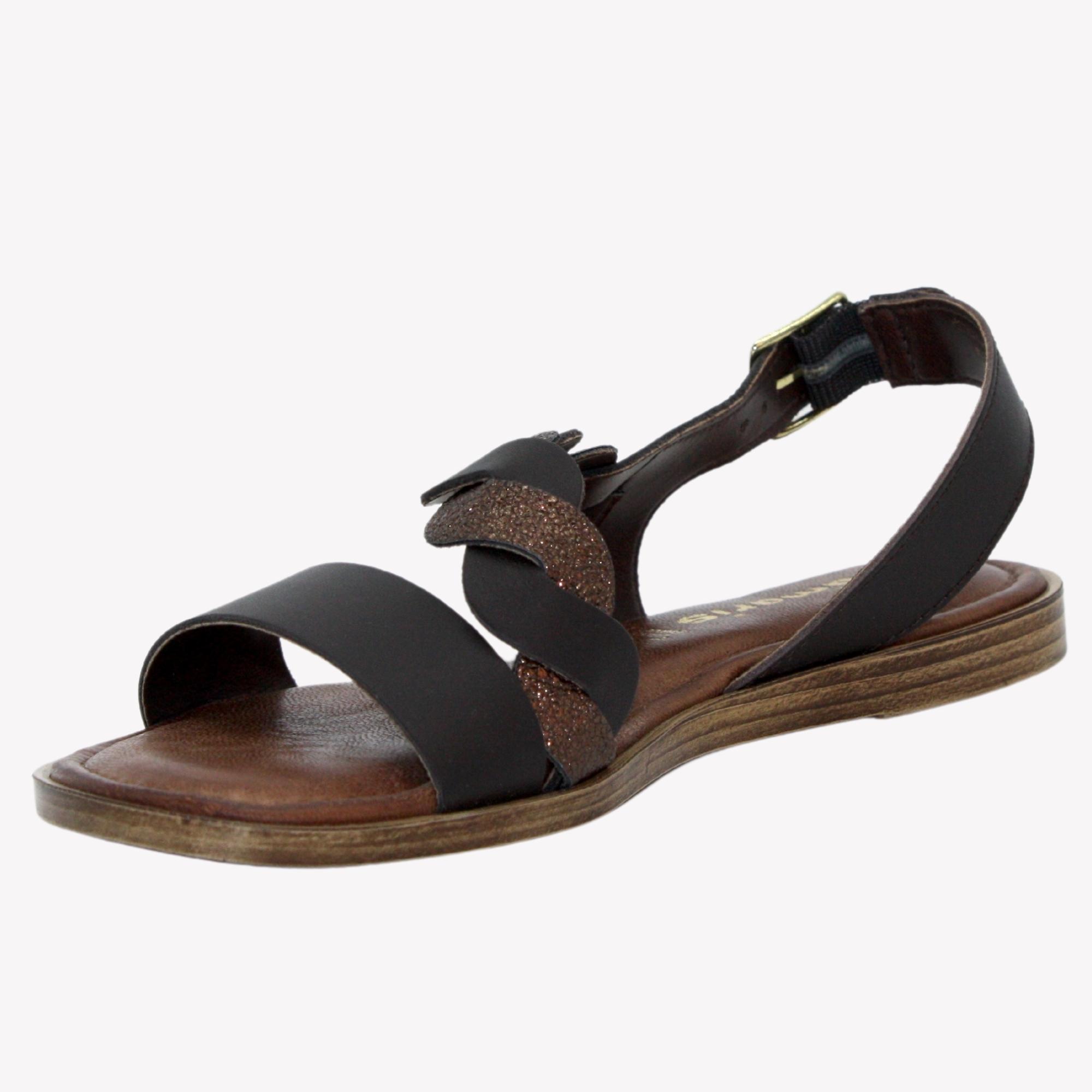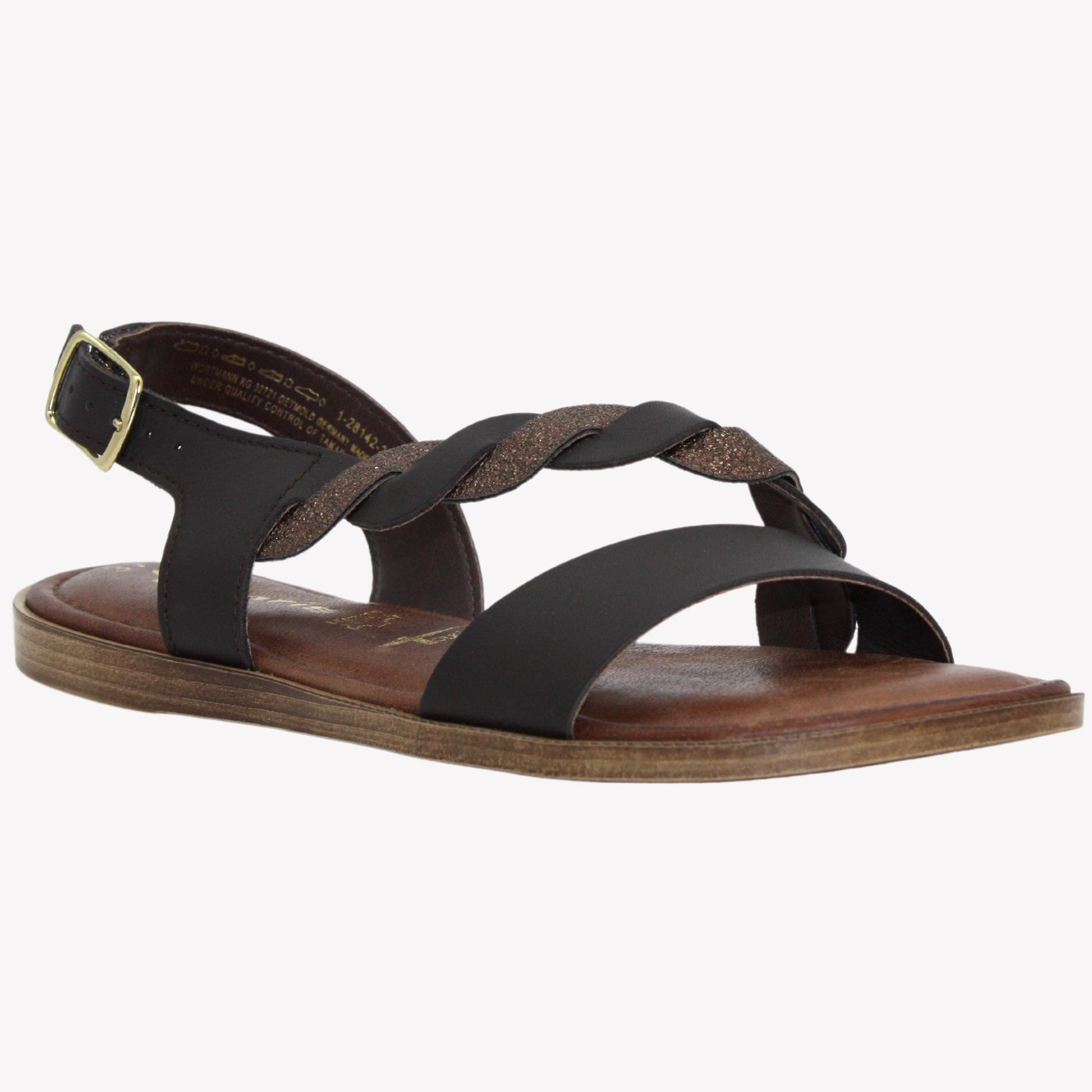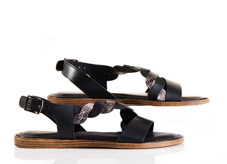 Designové, páskové sandále s módními metalickými prvky, v černé barvě, vhodné k ležérnímu nošení na nízké podešvi. Povrchový materiál bot tvoří kombinace kůže a syntetiky, podšívka a stélka je kožená. Stélka je vyměkčená a vyplněná paměťovou pěnou se systémem TOUCH IT. Podešev je syntetická. Pro všechny, kteří chtějí být originální.