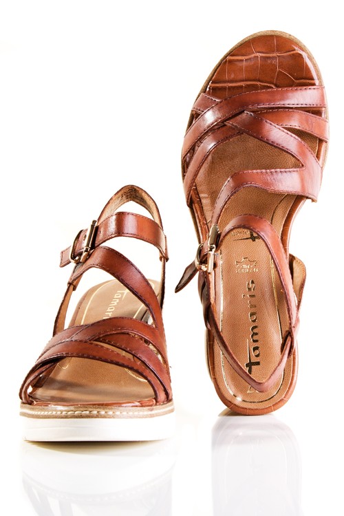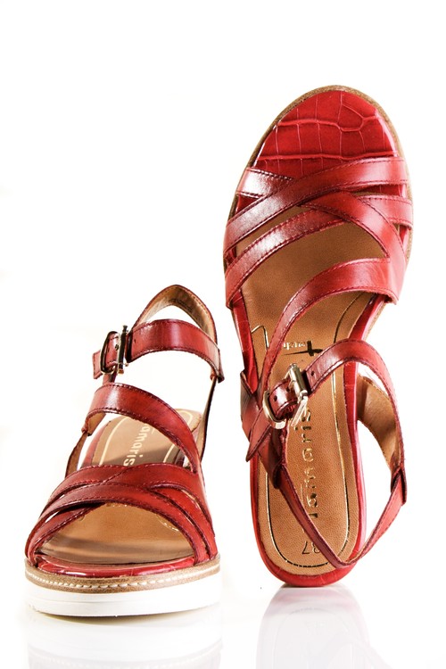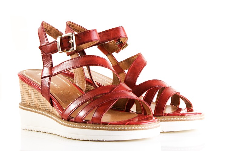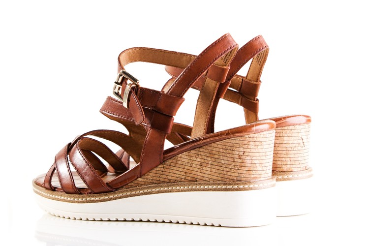 Pohodlné sandále na klínku. Výška klínu je cca 7 cm. Povrchový materiál bot tvoří hladká kůže , podšívka je syntetická a stélka je kombinace textilu a syntetiky. Stélka je vyměkčená a vyplněná paměťovou pěnou se systémem TOUCH IT, tudíž se naprosto přizbůsobí chodidlu zákazníka. Podešev je syntetická a v přední části měří cca 1,5 cm. Pro všechny, kteří chtějí být originální.