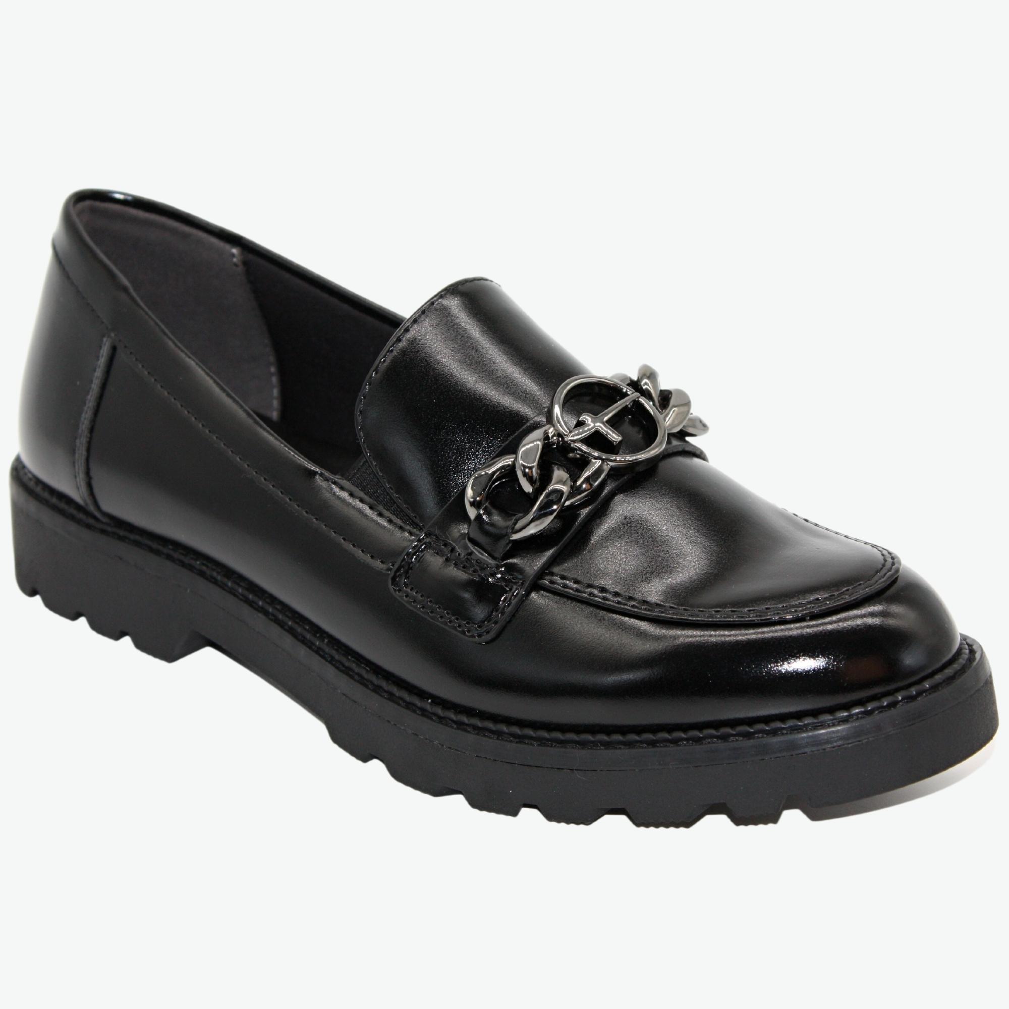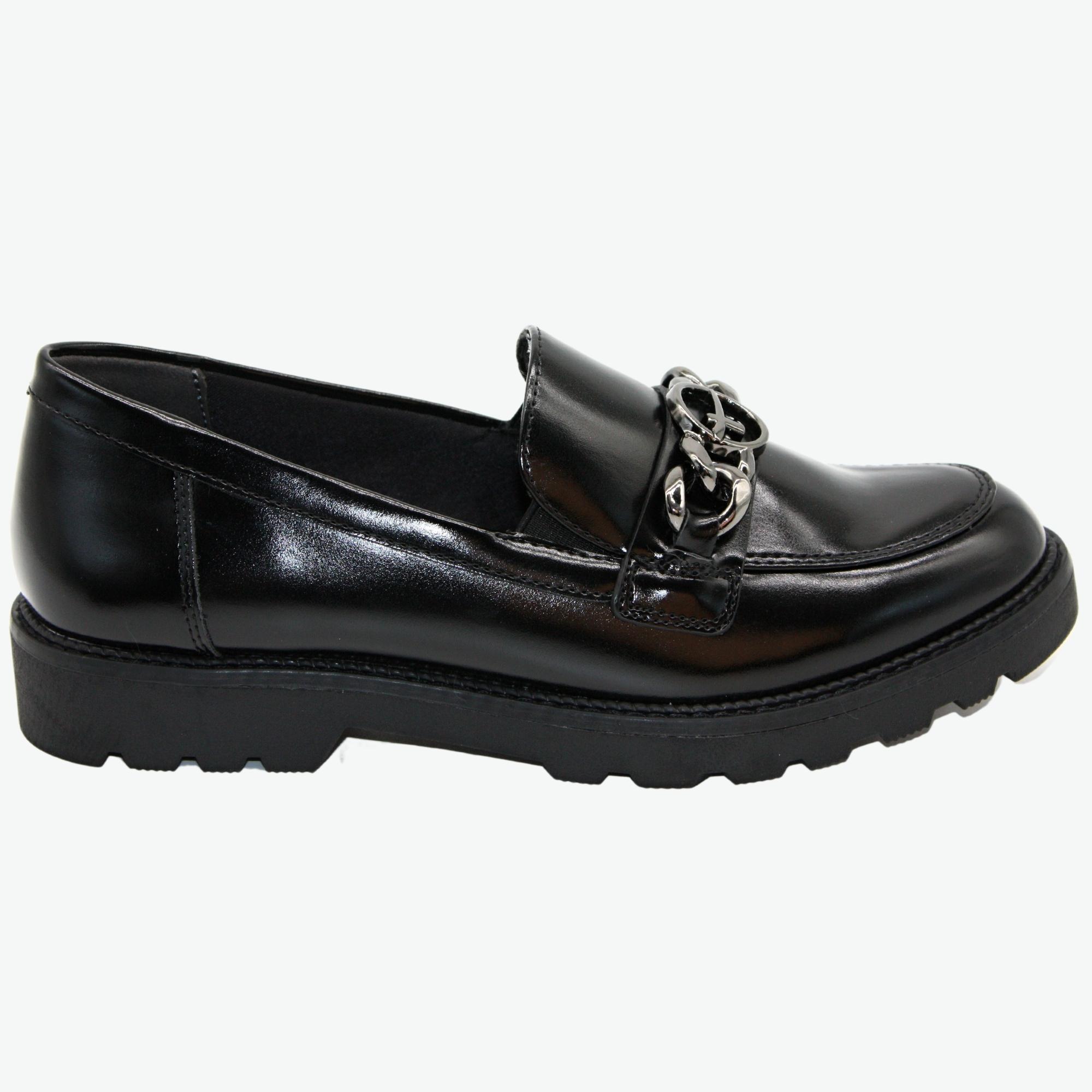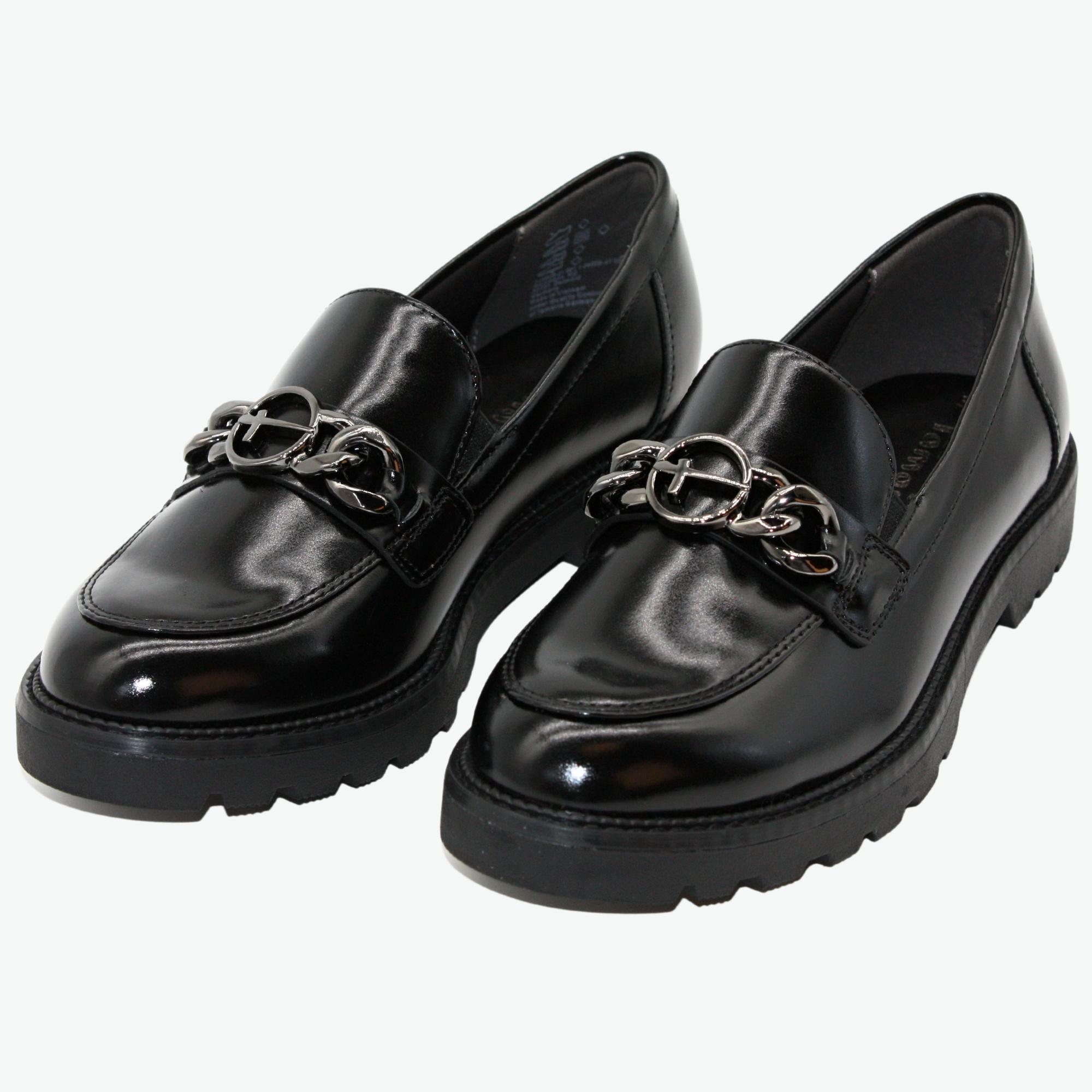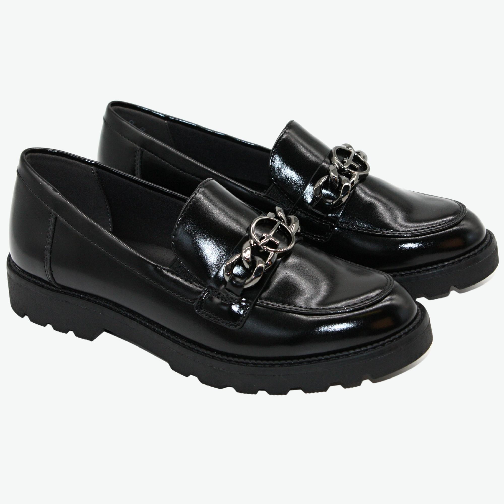 Dámské městské mokasíny s vyměkčenou stélkou na hrubé podešvi.Lakovaná úprava s luxusním ozdobným řetízkem. Perfektní ke kalhotám nebo elegantní sukni.Značka Tamaris je na našem trhu velmi populární nejen pro vždy trendový design obuvi, ale také pro pohodlí, které přináší. Tuto značku tvoří logo "