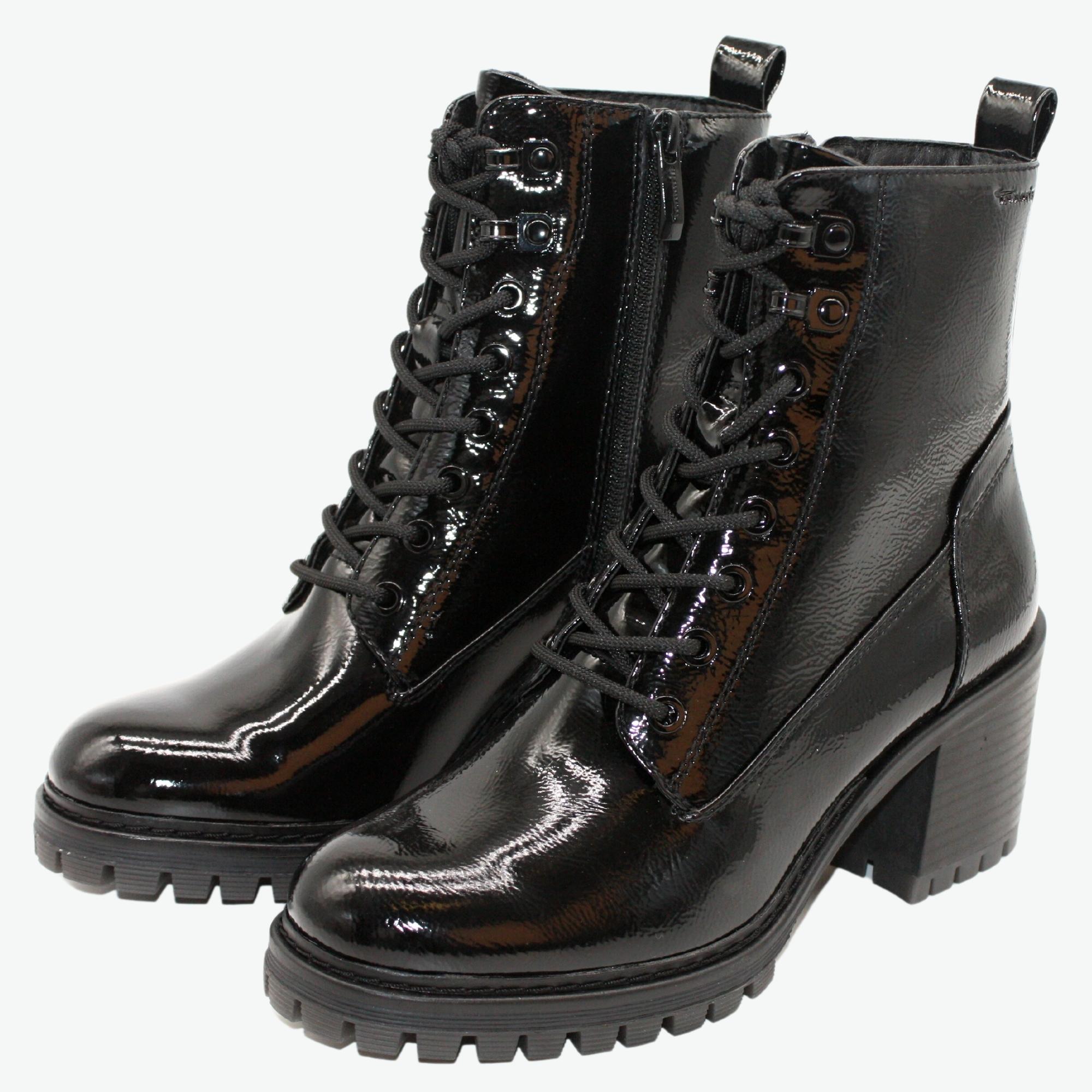 Dámské městské elegatní boty na středním stabilním podpatku s vyměkčenou stélkou a funkčním zipem z vnitřní strany. Díky šněrování stáhnete podle Vašich představ.Značka Tamaris je na našem trhu velmi populární nejen pro vždy trendový design obuvi, ale také pro pohodlí, které přináší. Tuto značku tvoří logo "