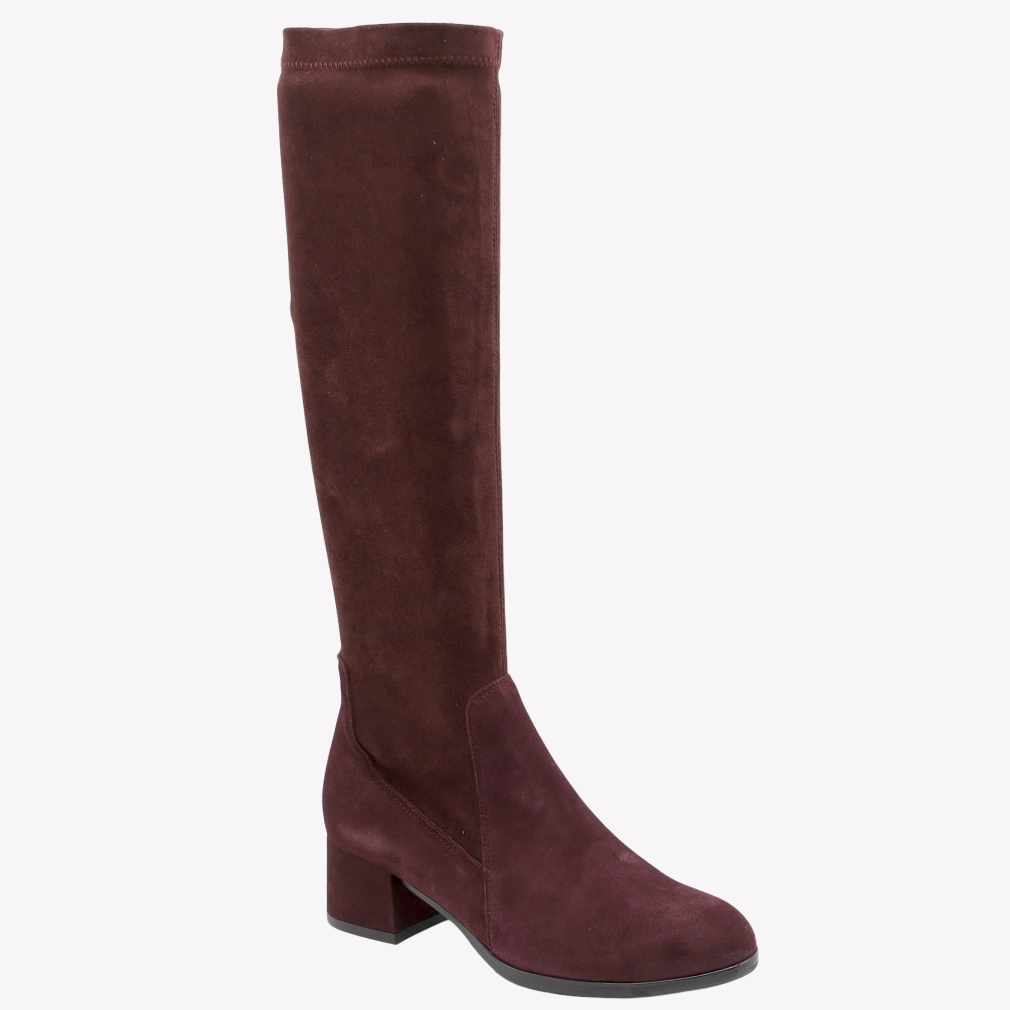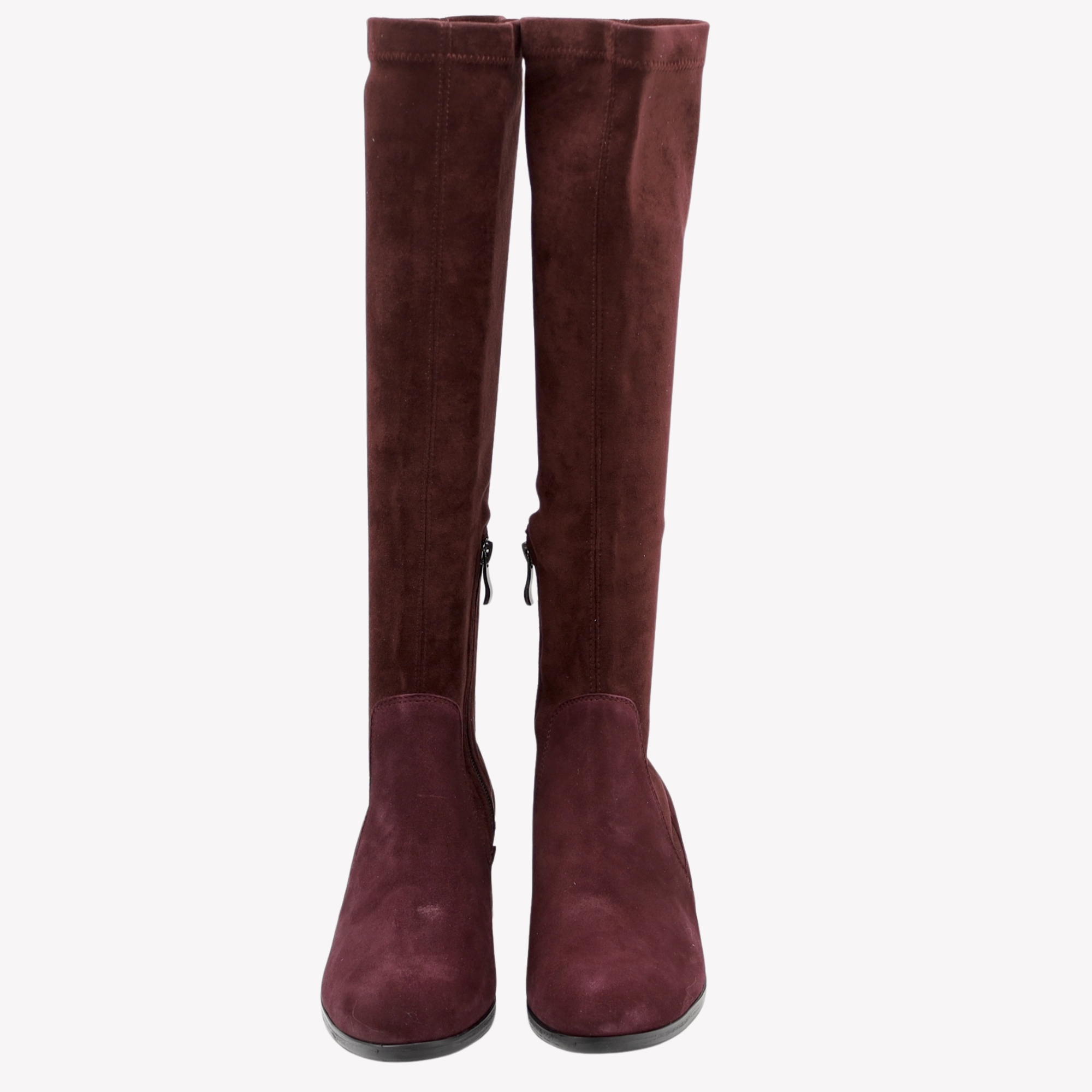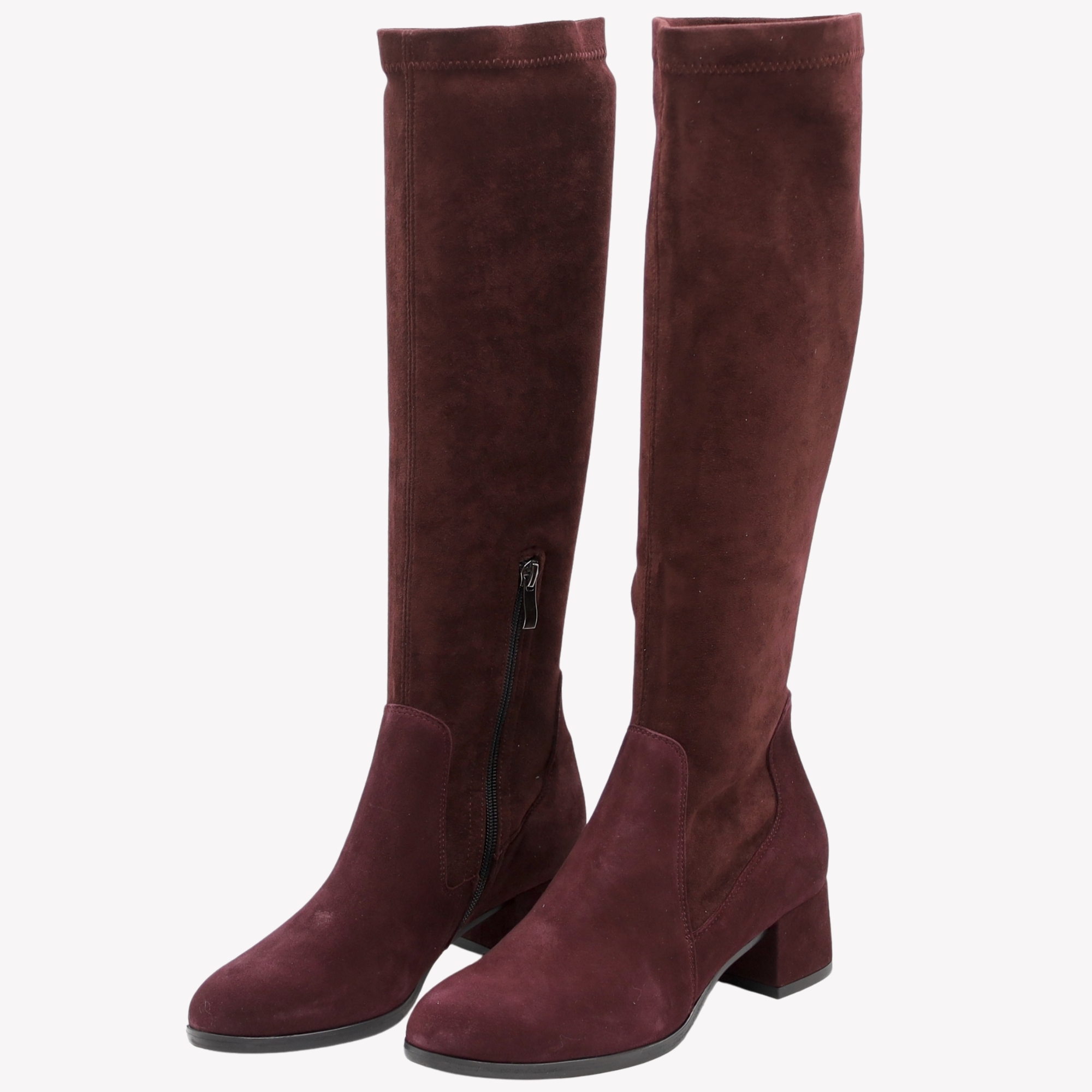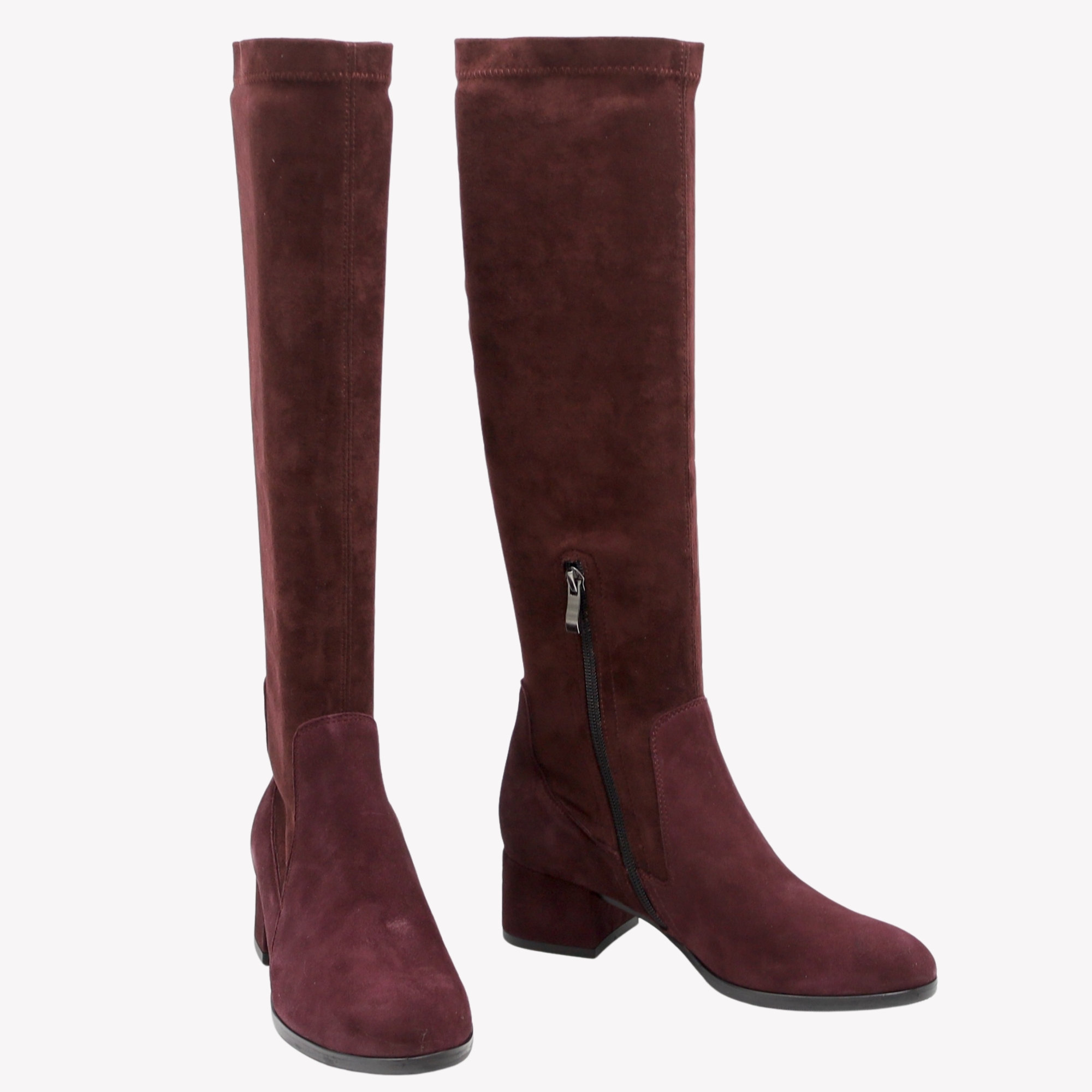 Dokonale sedí elastické kozačky v ještě užasnejší vínové barvě. Perfetní podpatek a luxusním semišovým vzhledem. Kozačky, které nebudete chitt sundat z nohou.