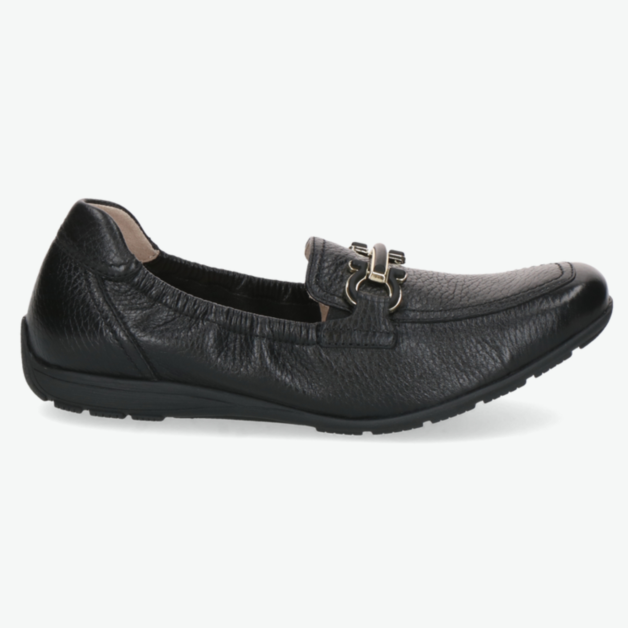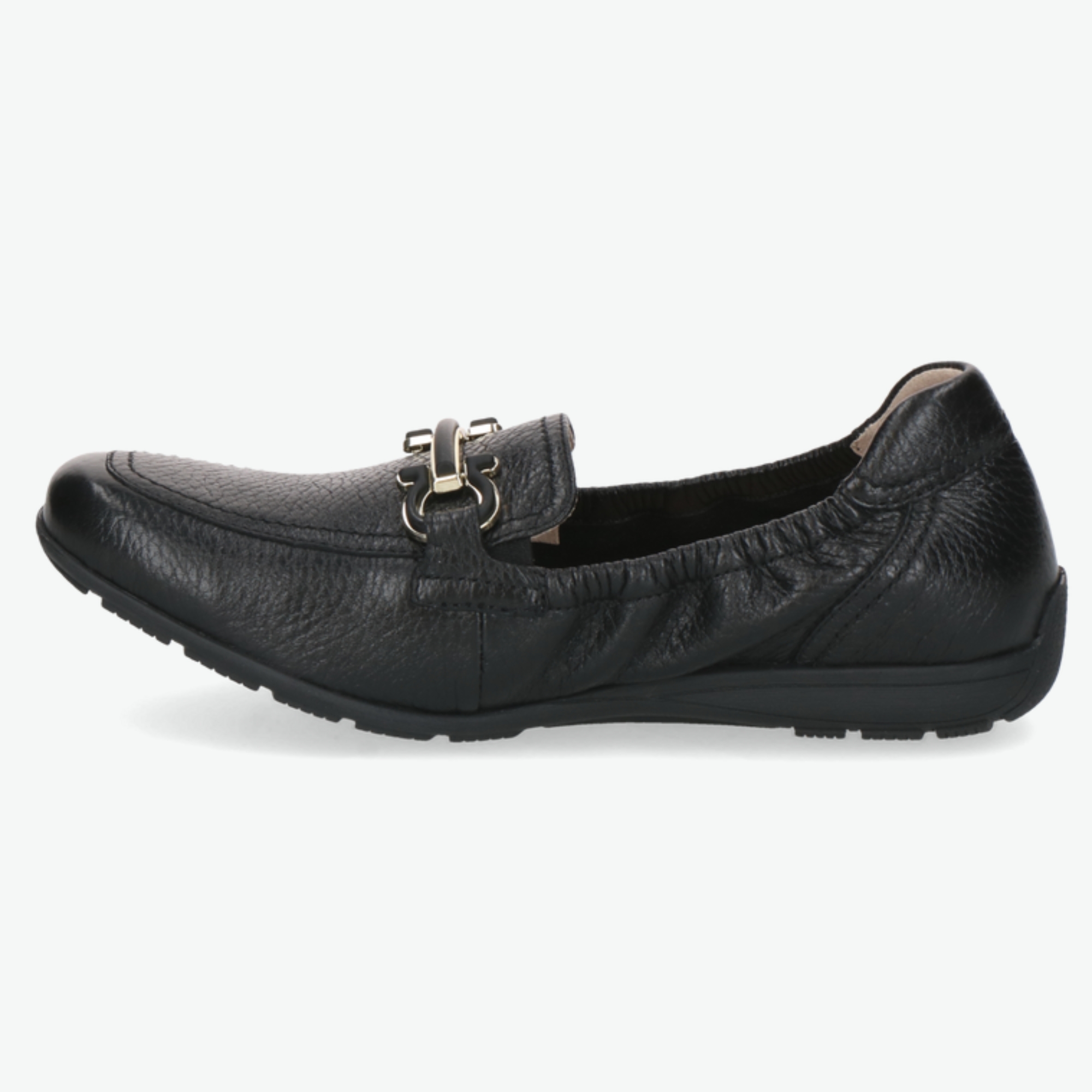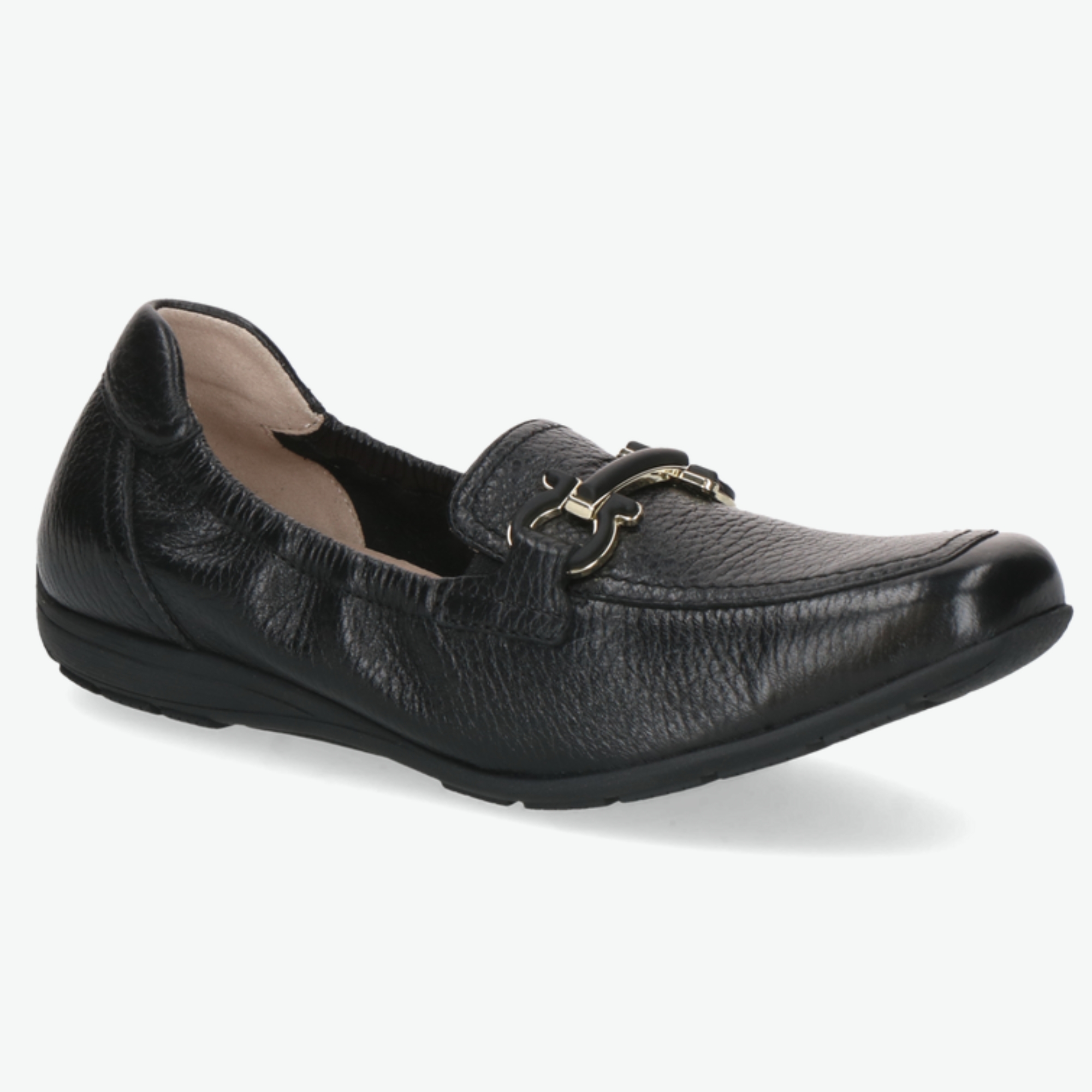 Dámská obuv značky Caprice je vyrobena z kvalitní černé přírodní kůže.Kůže má jemně zrnitou strukturu, která působí elegantně a zároveň odolně.Model je řešen ve stylu klasických mokasín, vhodných pro každodenní nošení.Na nártu se nachází decentní kovová ozdoba, která dodává botě sofistikovaný vzhled.Obuv má zaoblenou špičku, která poskytuje dostatek prostoru pro prsty.Vnitřní část boty je měkce polstrovaná pro vyšší komfort při chůzi.Stélka je příjemná na došlap a pomáhá tlumit nárazy.Podešev je lehká, pružná a vhodná i pro delší chůzi.Bota se snadno nazouvá díky otevřenému střihu bez šněrování.Černá barva umožňuje snadné kombinování s různými outfity.Model je ideální do práce, do města i na běžné pochůzky.Design boty spojuje praktičnost s nadčasovou elegancí.Značka Caprice je známá důrazem na pohodlí a kvalitní zpracování.Tato kožená mokasína je skvělou volbou pro ženy, které hledají styl a komfort zároveň.