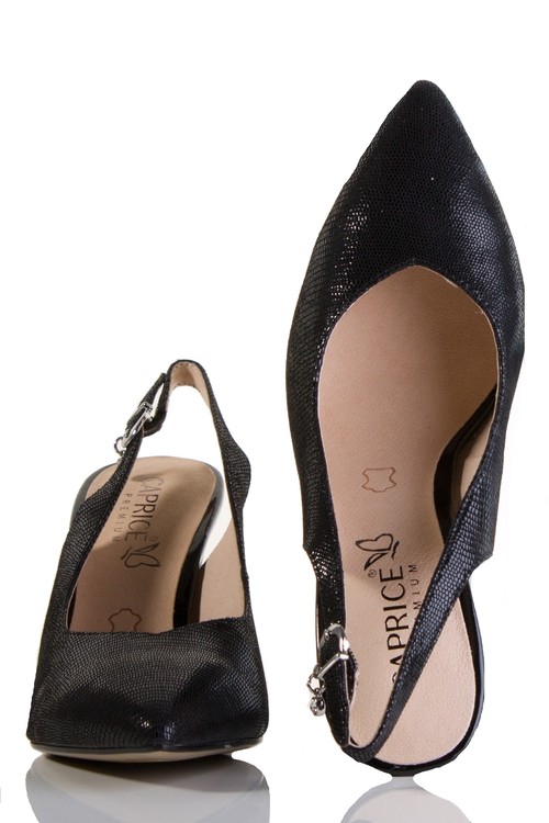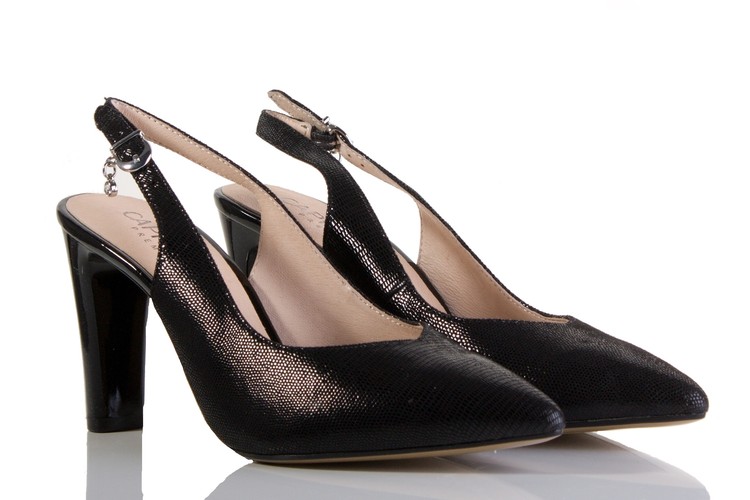 Luxusní lodičky s otevřenou patou a módní špičkou, vhodné ke společenským příležitostem na vysokém podpatku. Výška podpatku je cca 8 cm. Povrchový materiál bot tvoří kůže. Podšívka a stélka je kožená. Podešev je syntetická. Pro všechny ženy, které se rádi obouvají do elegantních bot.