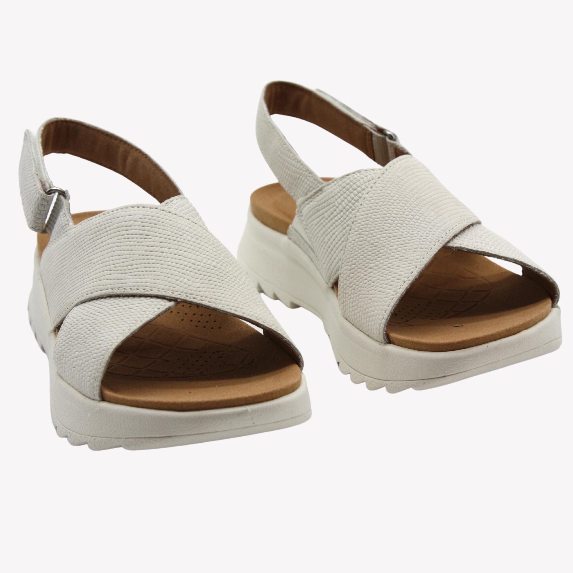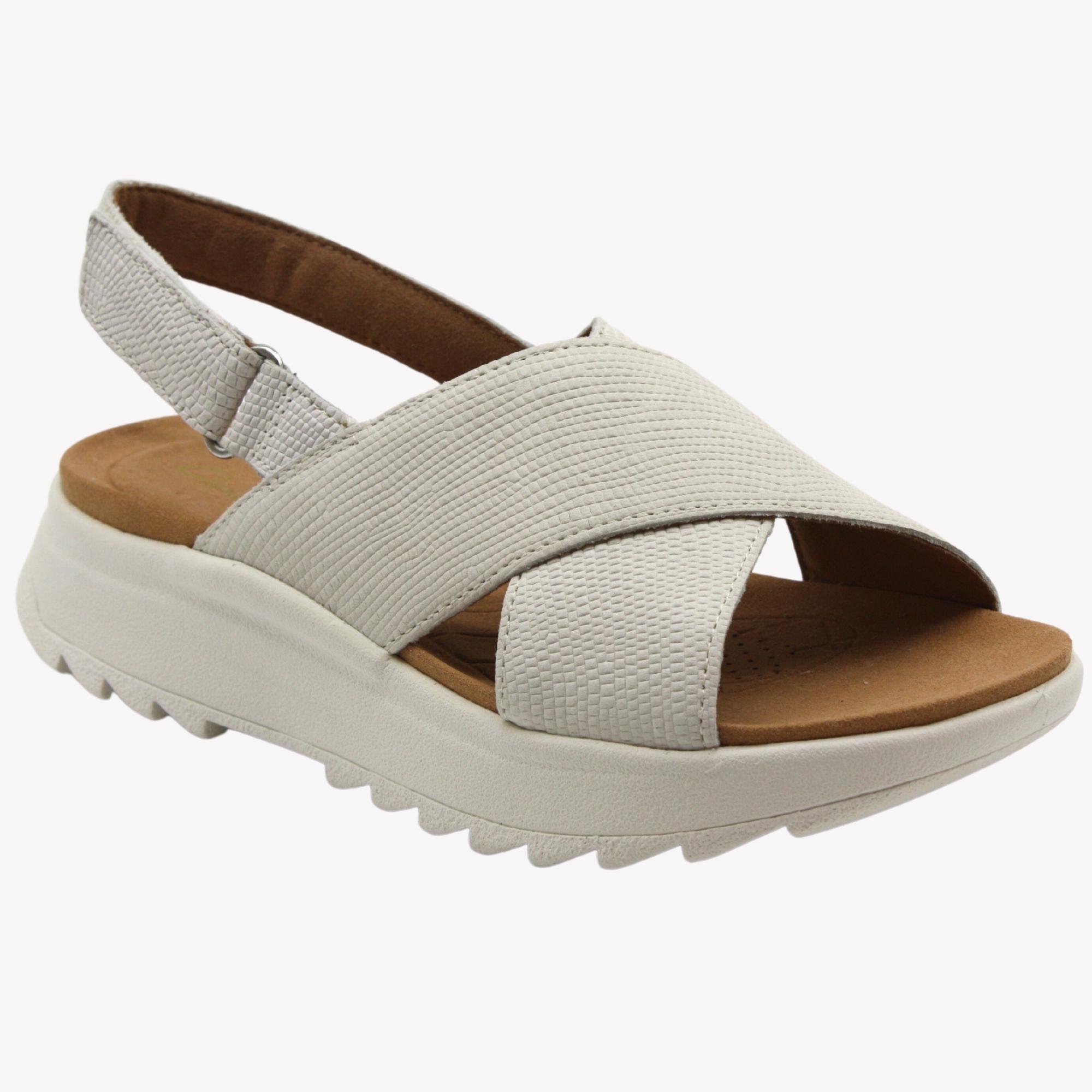 Dámské městské sandále na platformě s vyměkčenou stélkou. Bez textilní podšívky a tak se i skvěle přizpůsobují. Podešev je odlehčená a tak je to obuv na celý den.